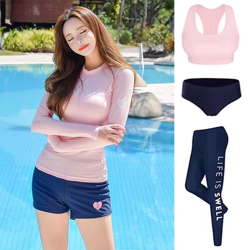 2024 한국식 서핑 다이빙 세트 여성 긴팔 태양 보호 세트 분할 빠른 건조 슬리밍 온천 해파리 세트 여성 세트
