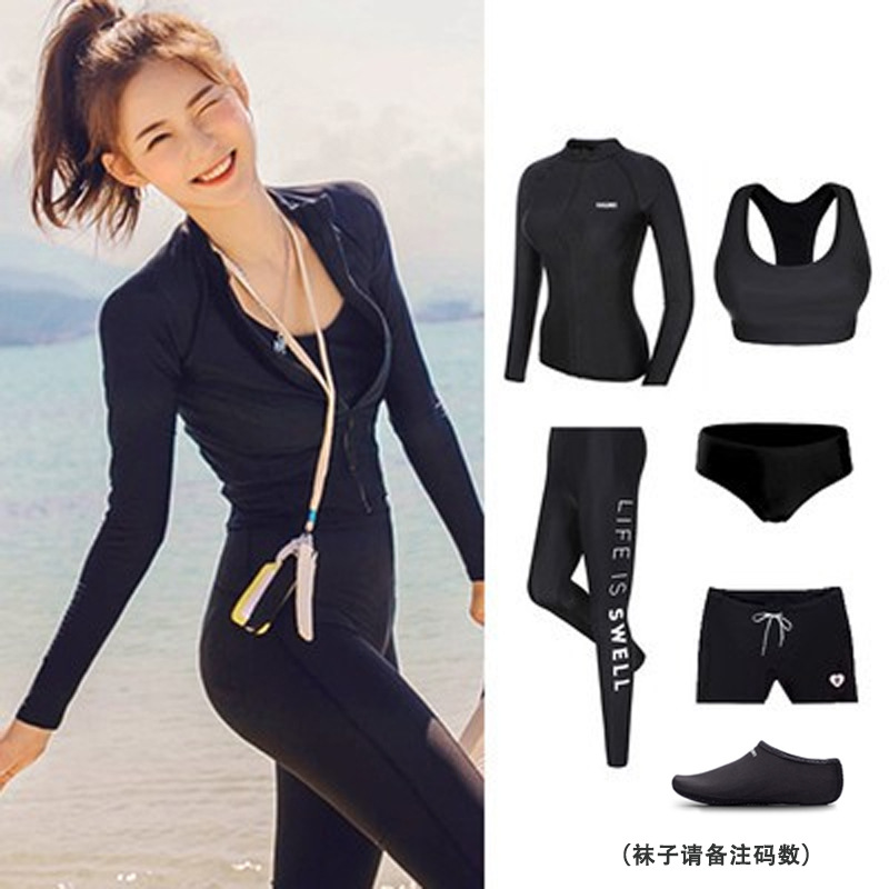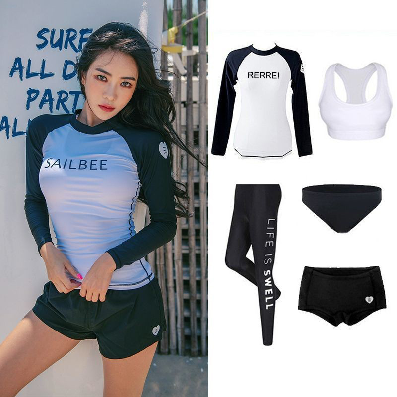 2024 한국식 서핑 다이빙 세트 여성 긴팔 태양 보호 세트 분할 빠른 건조 슬리밍 온천 해파리 세트 여성 세트스토어 가기