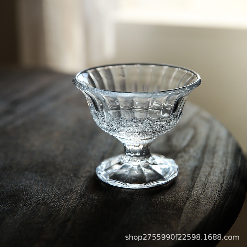 클래식 아이스크림 컵 조각 꽃 세로 패턴 플레어 디저트 높은 발 유리 그릇 높은 발 아이스크림 컵 작은 유리 그릇스토어 가기