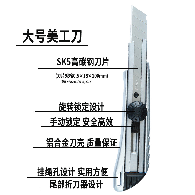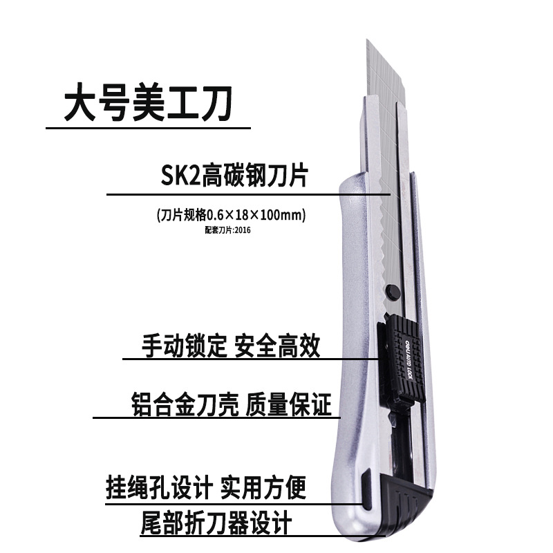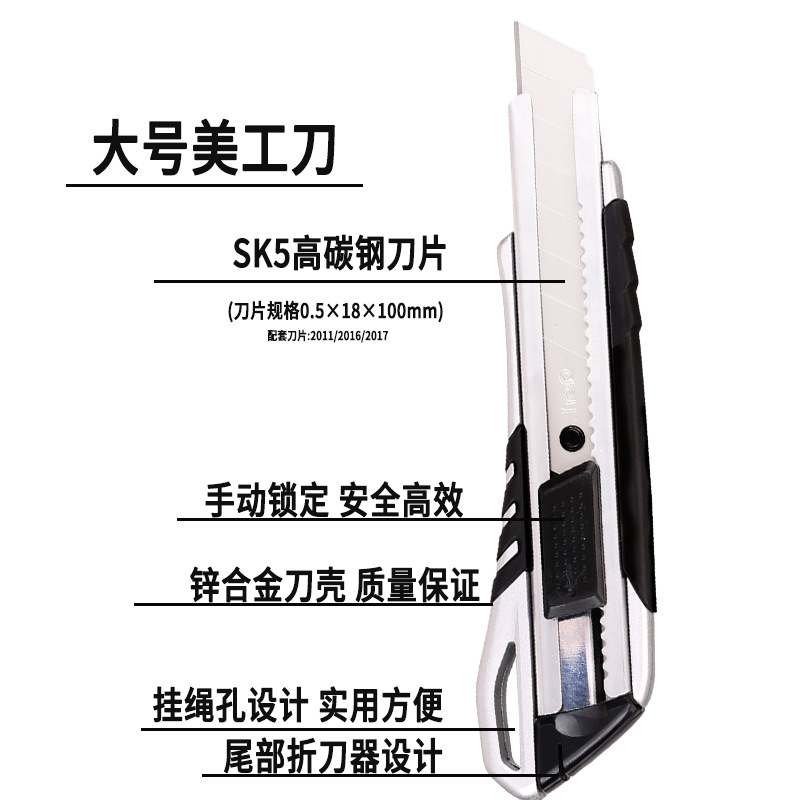 델리 메탈 케이스 아트 나이프 알루미늄 합금 대형 커팅 아트 오픈 박스 자동 잠금 샤프 컬러 종이 나이프 벽지 나이프