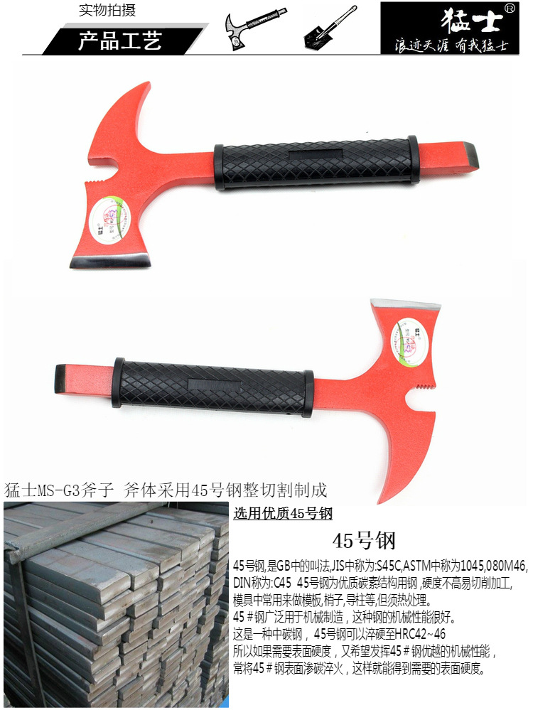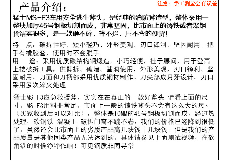 注意:这是救援消防斧刃厚砍木头不锋利 不适合作为营地斧头使用
