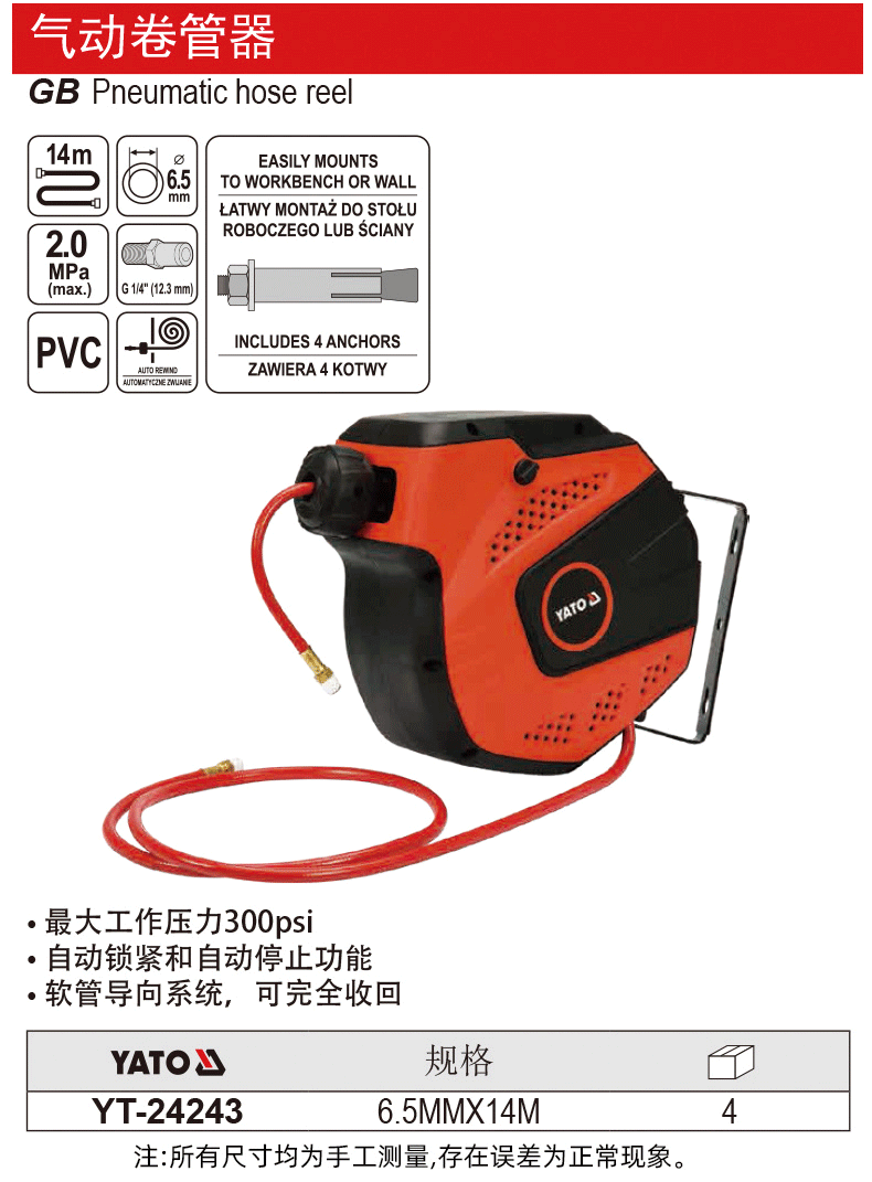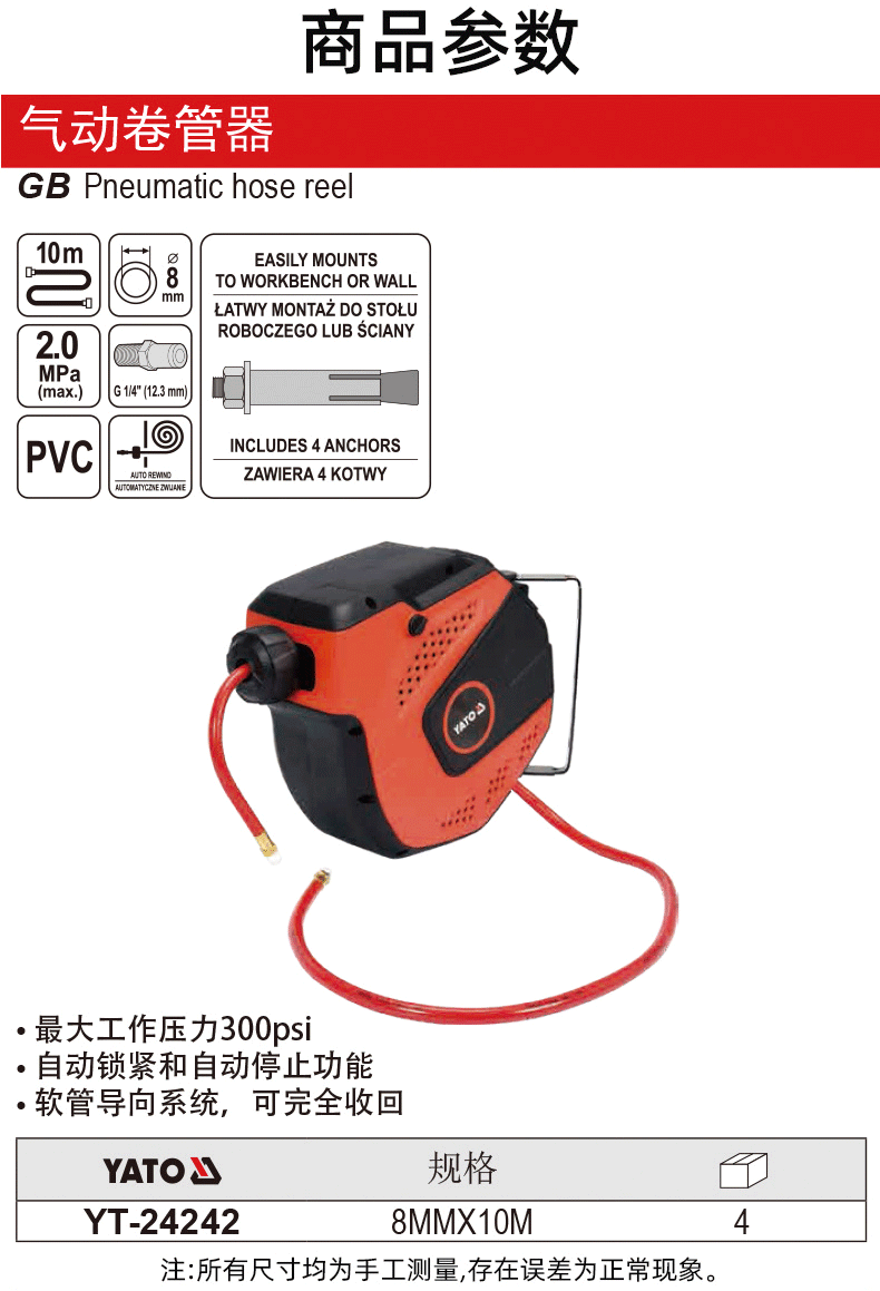 YATO 공압 호스 릴 호스 드럼 릴 기계 감기 기관 연장 코드 릴 자동 텔레스코픽 릴스토어 가기