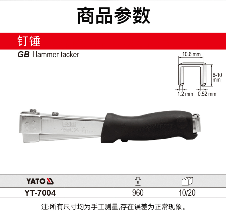 YATO (YATO) 와이어 홈 못 박는 장치 수동 코드 네일 해머 목공 도어 네일 스틸 네일 해머
