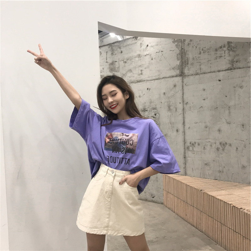 초인기 cec 반팔 티셔츠 여성용 신상 2026 여름 하라주쿠 스타일 bf 프린트 티셔츠 학생용 만능 상의 수출용