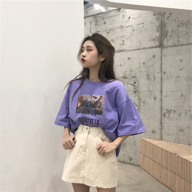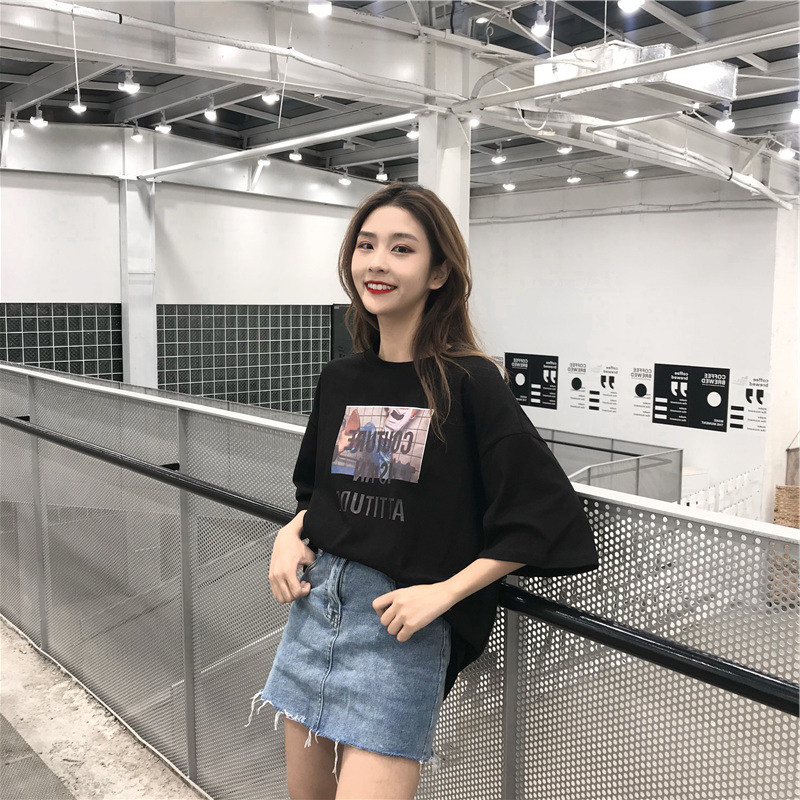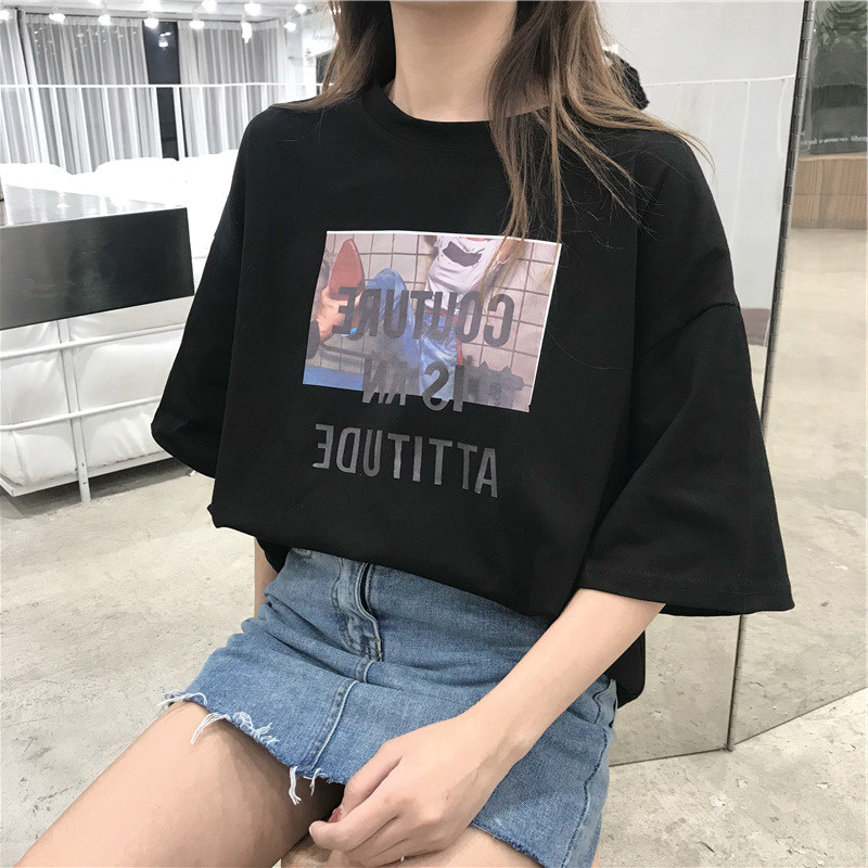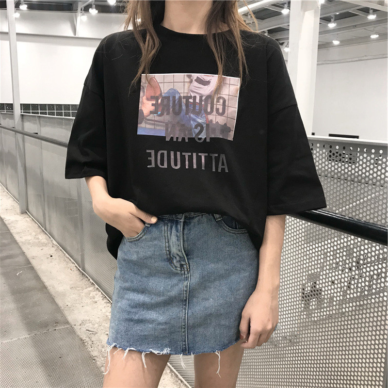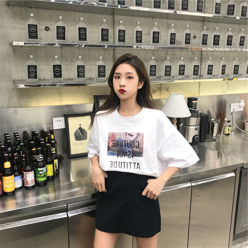 초인기 cec 반팔 티셔츠 여성용 신상 2026 여름 하라주쿠 스타일 bf 프린트 티셔츠 학생용 만능 상의 수출용스토어 가기