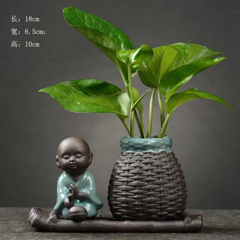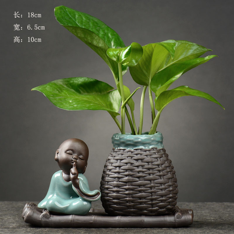 신중국식 초록 장미 구리 돈 풀 수경 초록 식물 세라믹 화분 꽃병 젠 티 테이블 탁상 꽃 장식품 도매스토어 가기