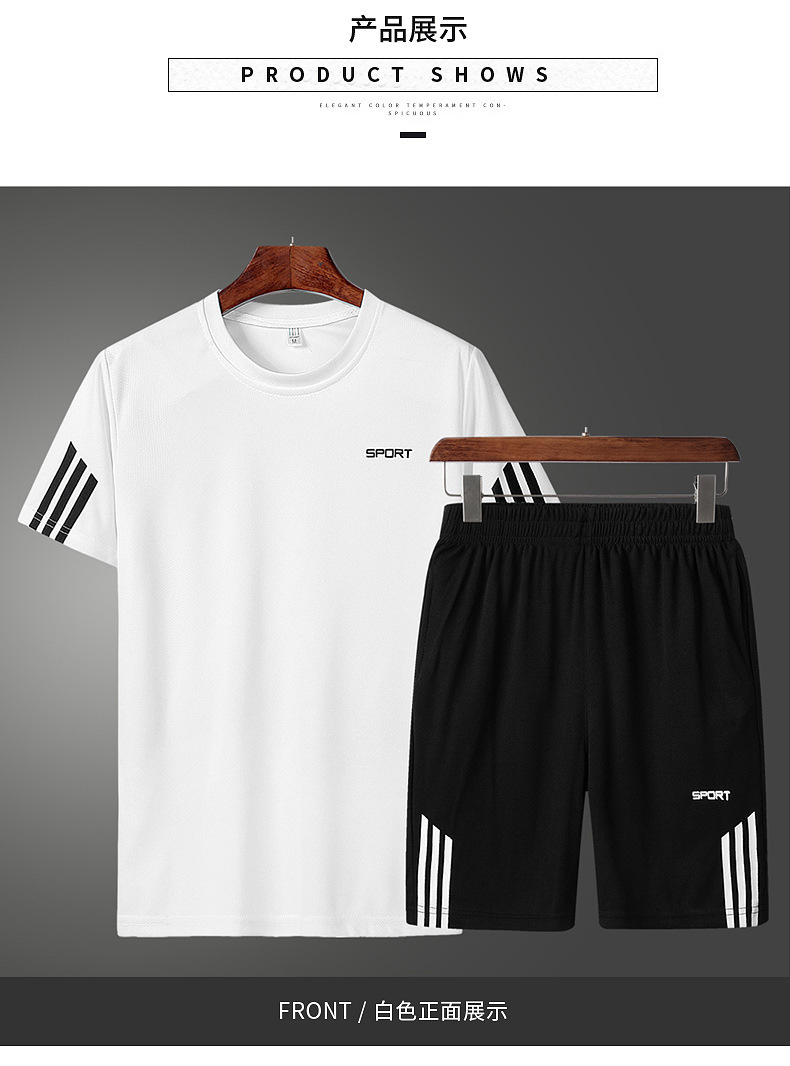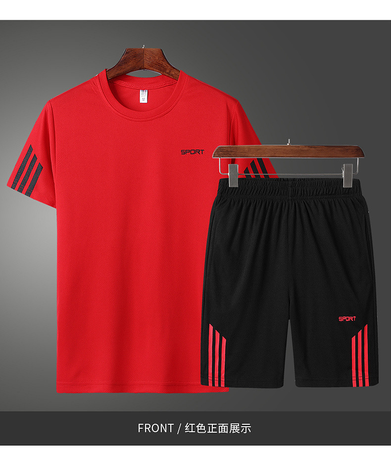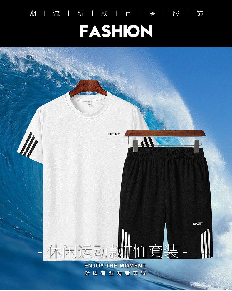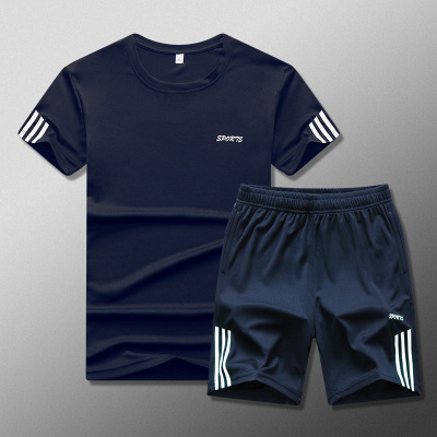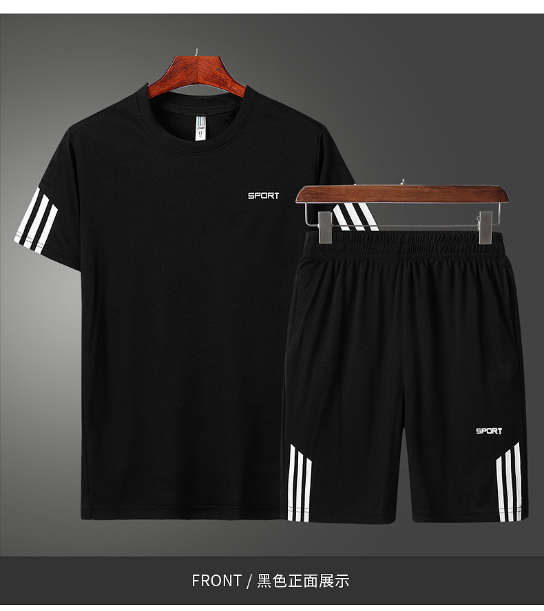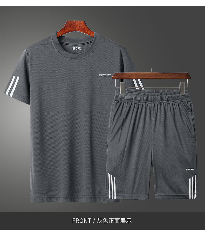 2020 남성 캐주얼 스포츠 세트 슈퍼 플러스 사이즈 반팔 세트 스포츠웨어 통기성 속건 여름 캐주얼 세트