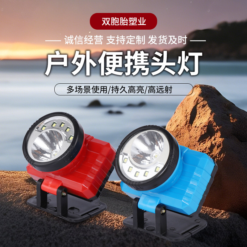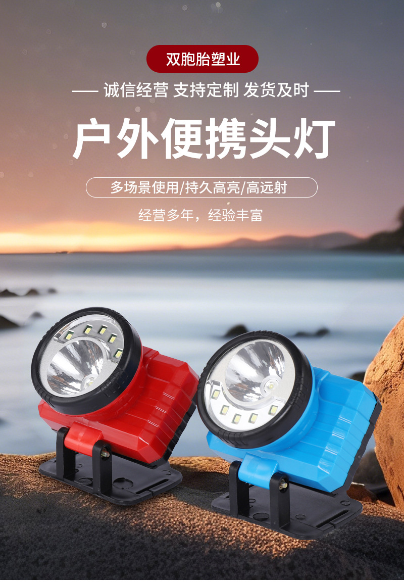 이중 색상 LED 캠핑 플라스틱 헤드라이트 조명 비상용 헤드램프 건전지 방수 헤드라이트
