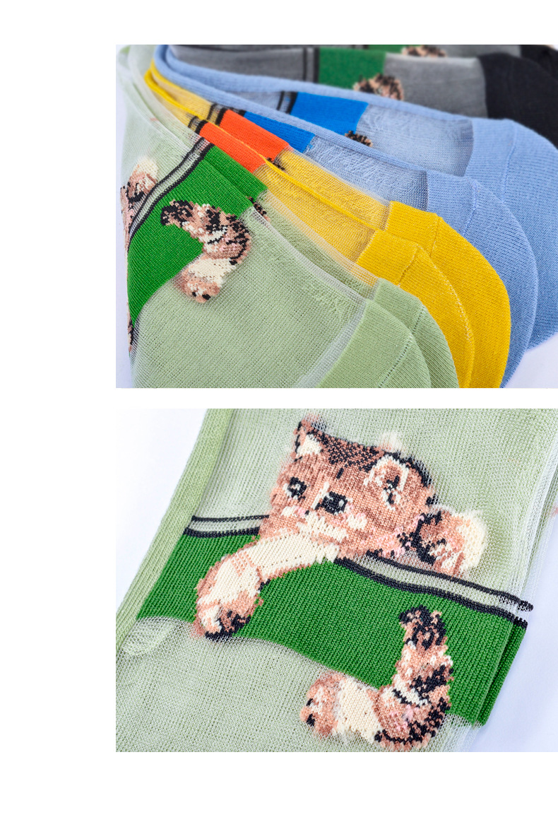 봄과 여름 양말 여성용 짧은 양말 귀여운 일본 크리스탈 실크 투명 실크 새끼 고양이 유리 실크 스타킹 면 바닥 얇은 여름스토어 가기
