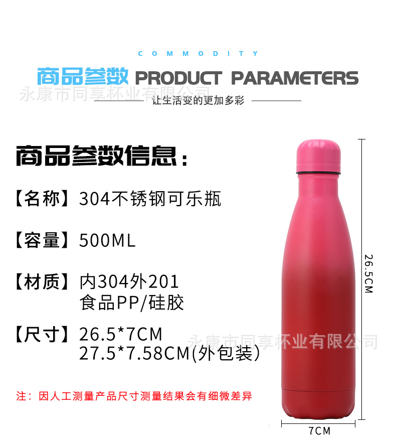공장 직공급 콜라병 보온병 컵 304 스테인리스 야외 스포츠 주전자 스프레이 시리즈 모발 세대