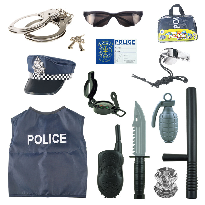 어린이 장난감 경찰 의상 세트 할로윈 코스프레 의상 액세서리 마이크로 우표 FBI 모자 경찰 조끼스토어 가기