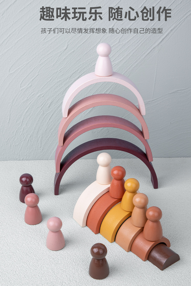 레인보우 아치 하우스 리틀 맨 조합 나무 어린이 조기 교육 다채로운 반원 빌딩 블록 쌓인 장난감스토어 가기