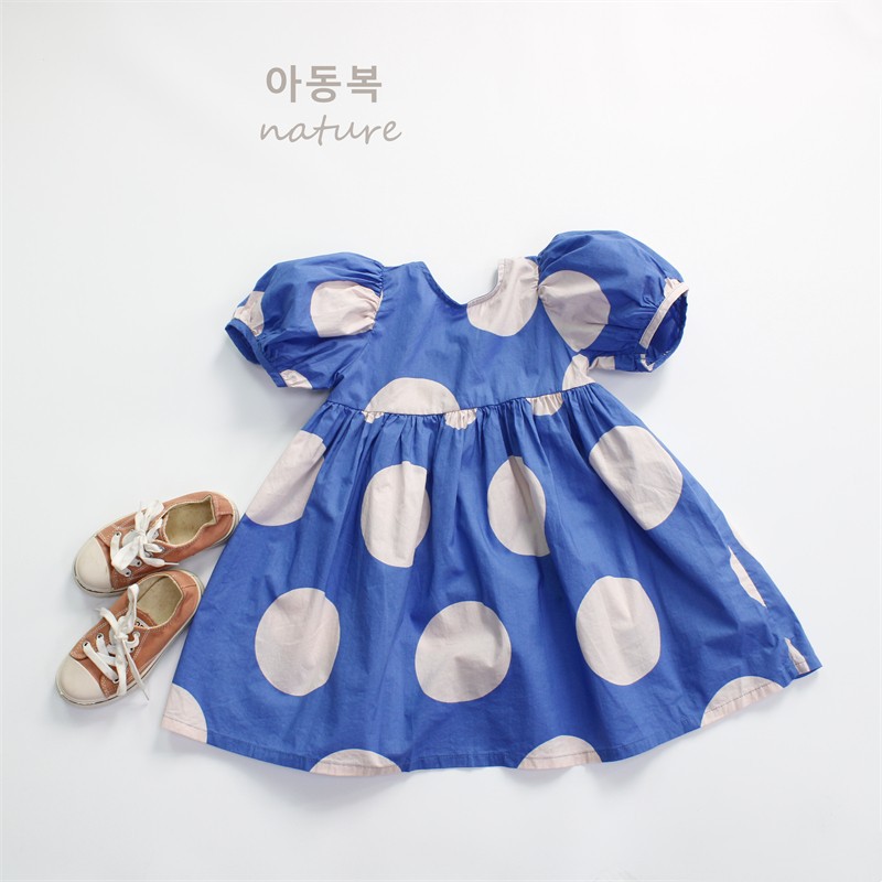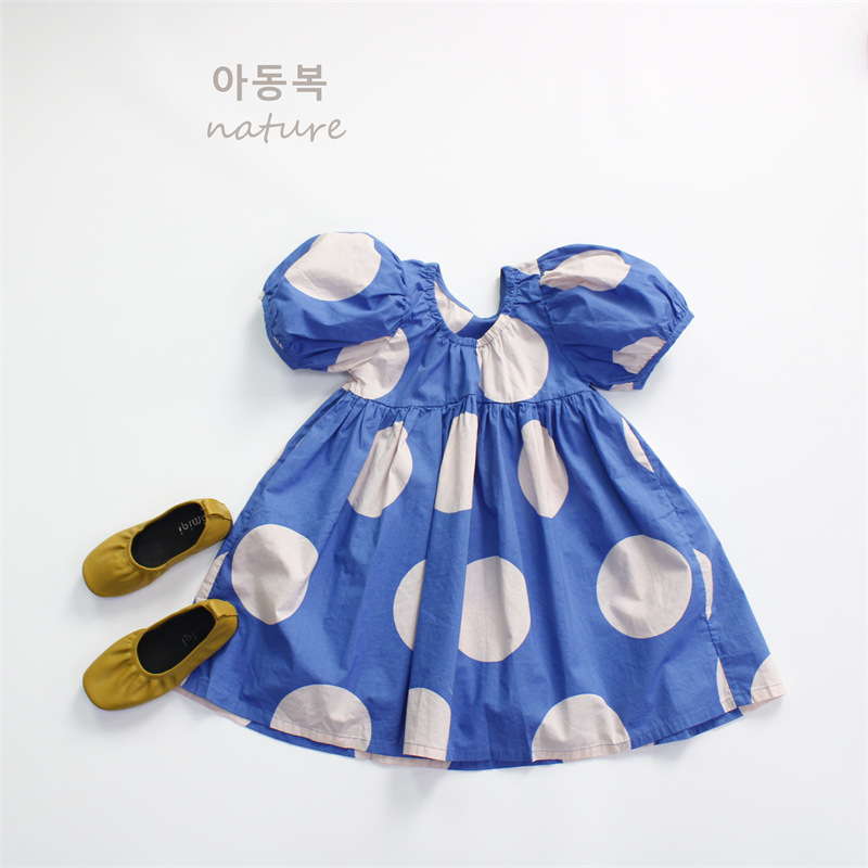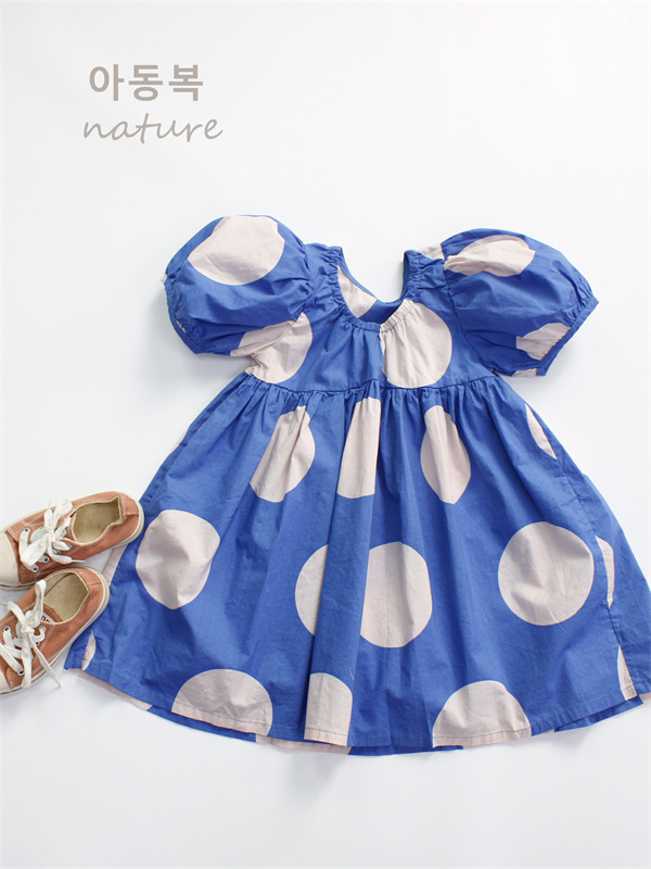 2024 년 여름 어린이 원피스 한류 버블 슬리브 소녀 공주 스커트 어린이 모델 리얼 샷스토어 가기