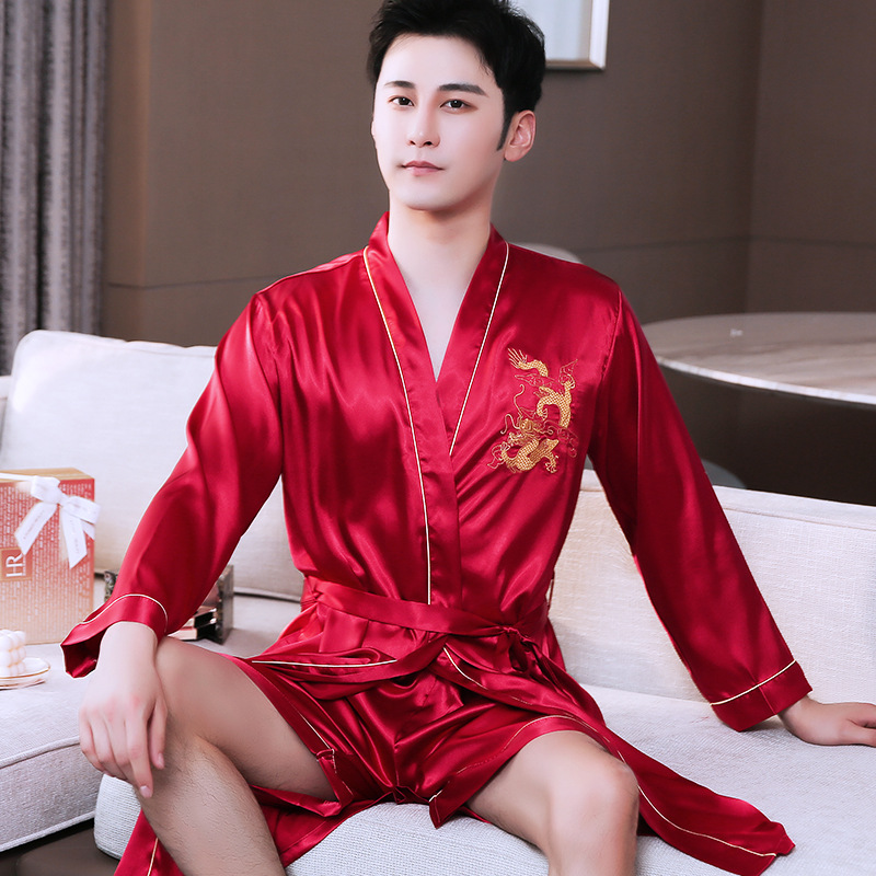 커플 잠옷 여름 아이스 실크 긴팔 세트 잠옷 여자의 섹시 슬립 스커트 남자의 플러스 사이즈 실크 얇은 가정 옷