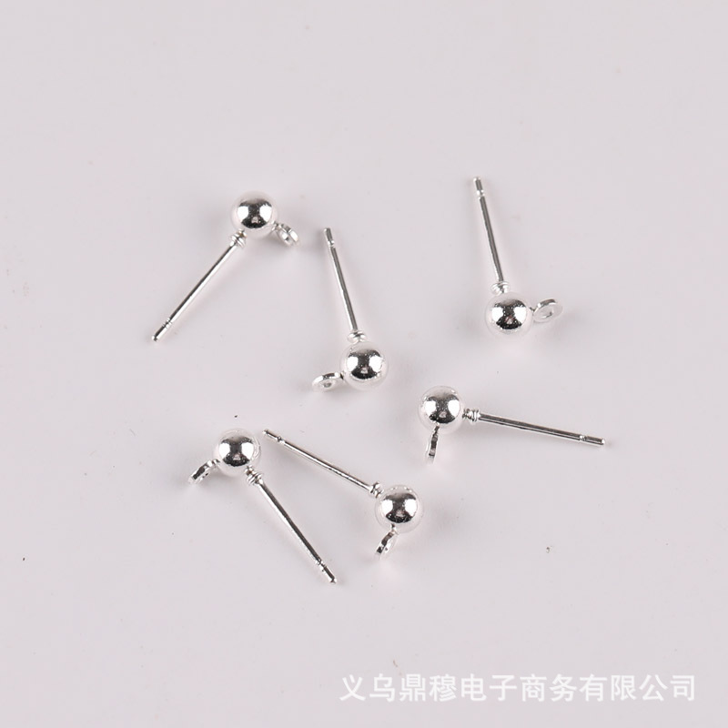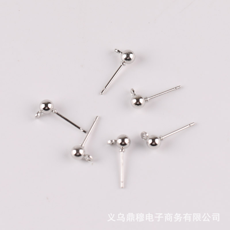 珠针4/6mm圆球耳钉带吊圈白K色耳针耳环针配件 diy耳饰配件 材质:铁