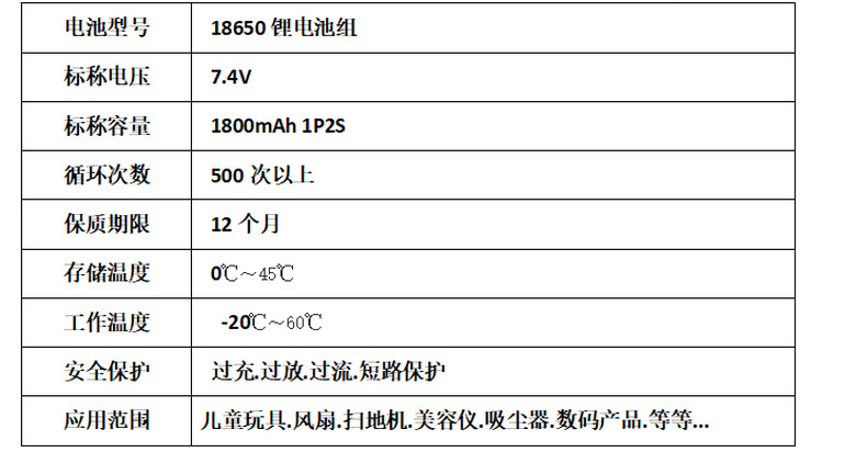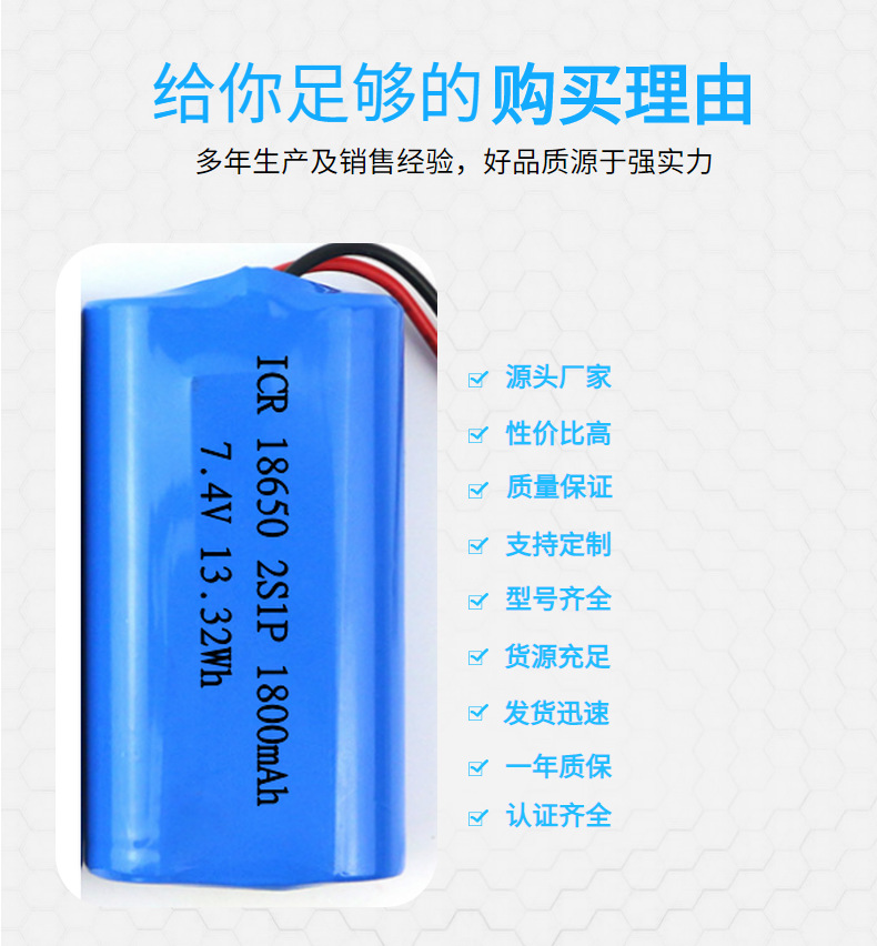 공장 도매 소형 팬 진공 청소기 배터리 18650 7.4V 1800mAh 리튬 배터리 팩