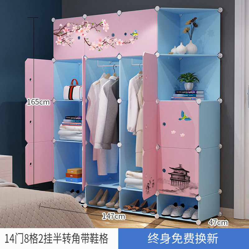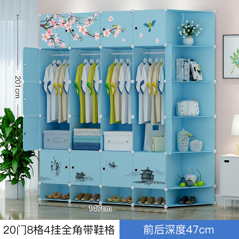간단한 옷장 간단한 현대 경제적 모조 천 옷장 플라스틱 조립 단일 소형 아파트 임대 룸 옷장
