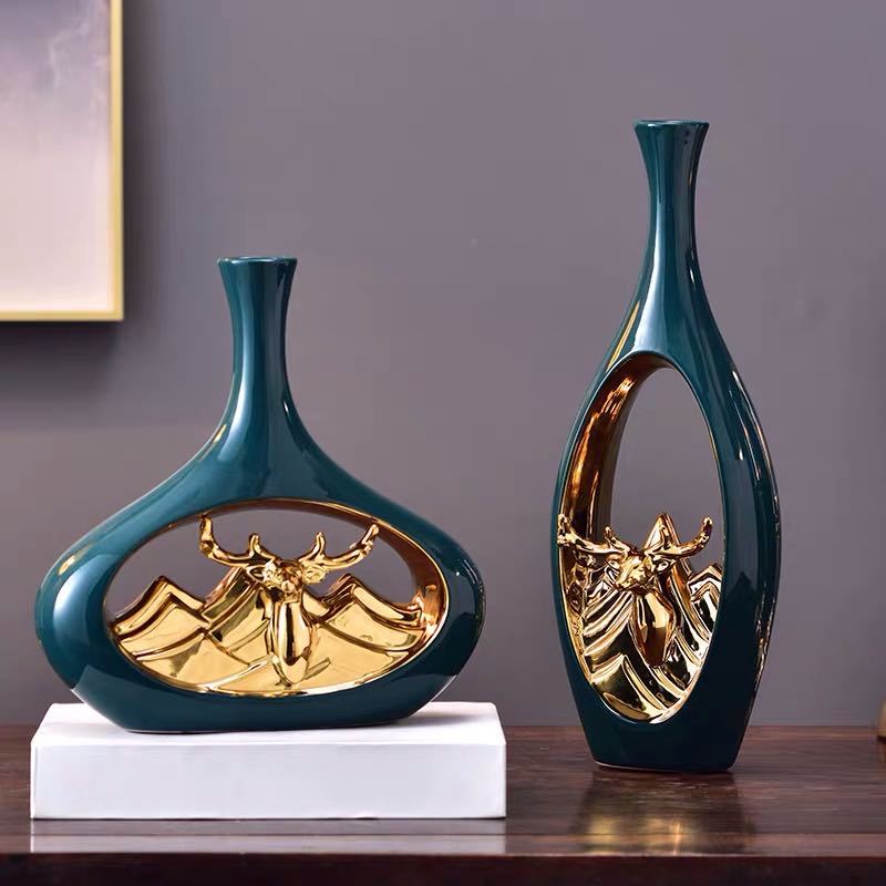 새로운 중국 스타일 빛 럭셔리 장식 창조적 인 가정 장식 간단한 거실 입구 꽃병 꽃 배열 말린 꽃 수경 꽃스토어 가기