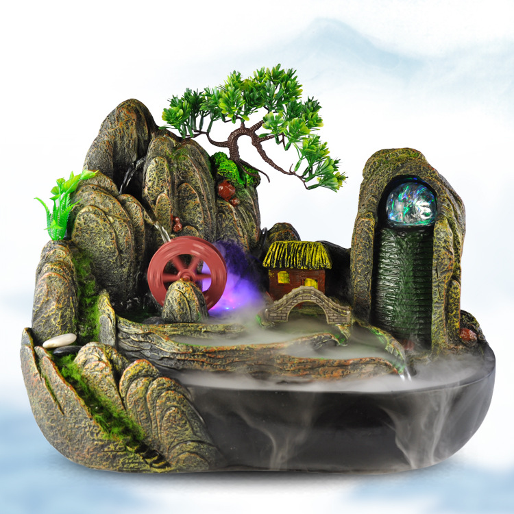 선 풍수 바퀴 바위 흐르는 물 분수 일본식 목가적 거실 마루 바닥 옥내 안뜰 신중국식 복재 장식품