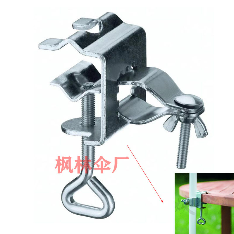 此款产品使用户外平行地面的墙面 桌面夹子可以用,太粗的伞杆超过35MM直径的杆子够呛了哦,另外夹住的桌面或者墙面厚度最好在5里面以内