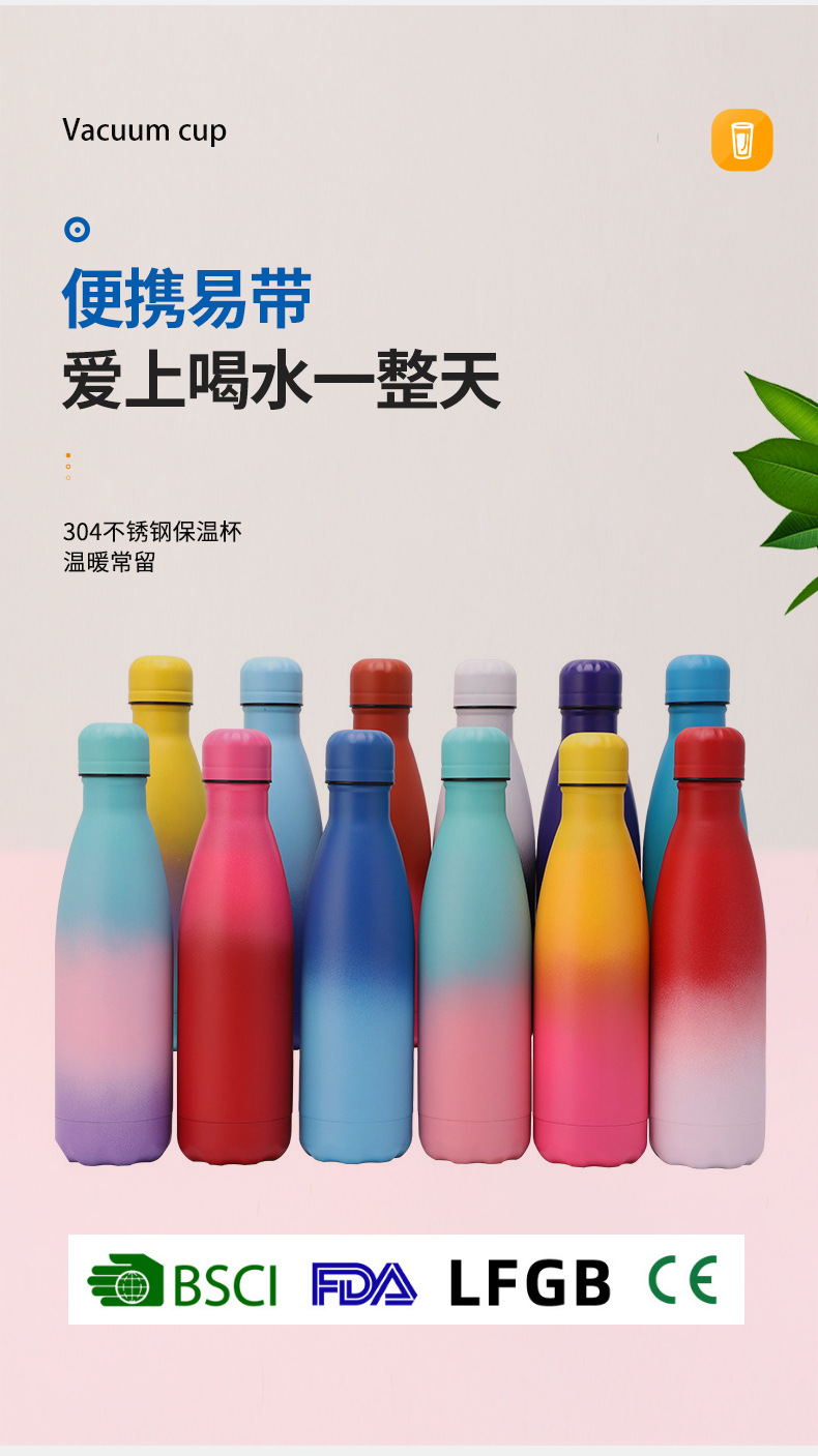 국경 간 직공급 플라스틱 스프레이 콜라병 보온병 304 2 중 스테인레스 스틸 야외 스포츠 주전자 대용량 선물스토어 가기