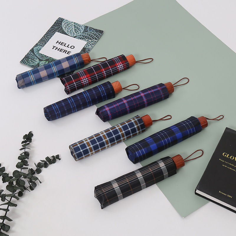 공급 신선한 10K 폴리 에스테르 격자 무늬 남성 및 여성용 이중 사용 접이식 태양 우산 광고 로고스토어 가기