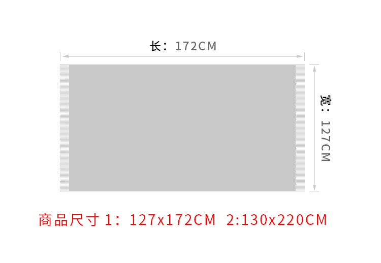 130*170CM 包装尺寸37×25×9 重量750克 适用:1-2人盖毯,沙发巾