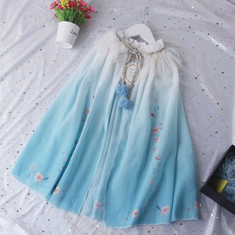 새로운 어린이 골동품 그라데이션 쉬폰 롱 케이프 여아 한푸 망토 해변 자외선 차단제 셔츠 여름 얇은스토어 가기