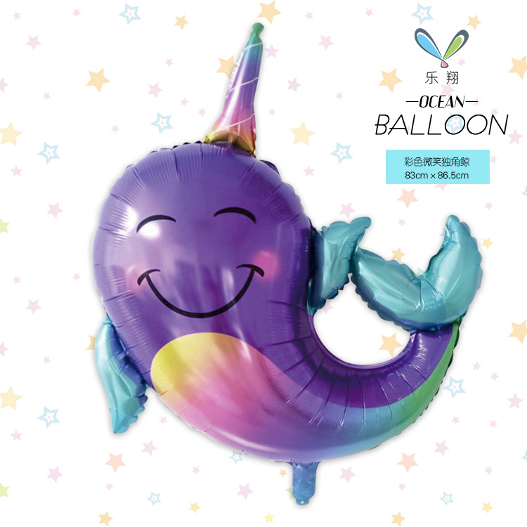 MECRLA 해양 시리즈 알루미늄 필름 동물 풍선 웃는 얼굴 컬러풀한 북극고래 해적 상어 돌고래 테마스토어 가기