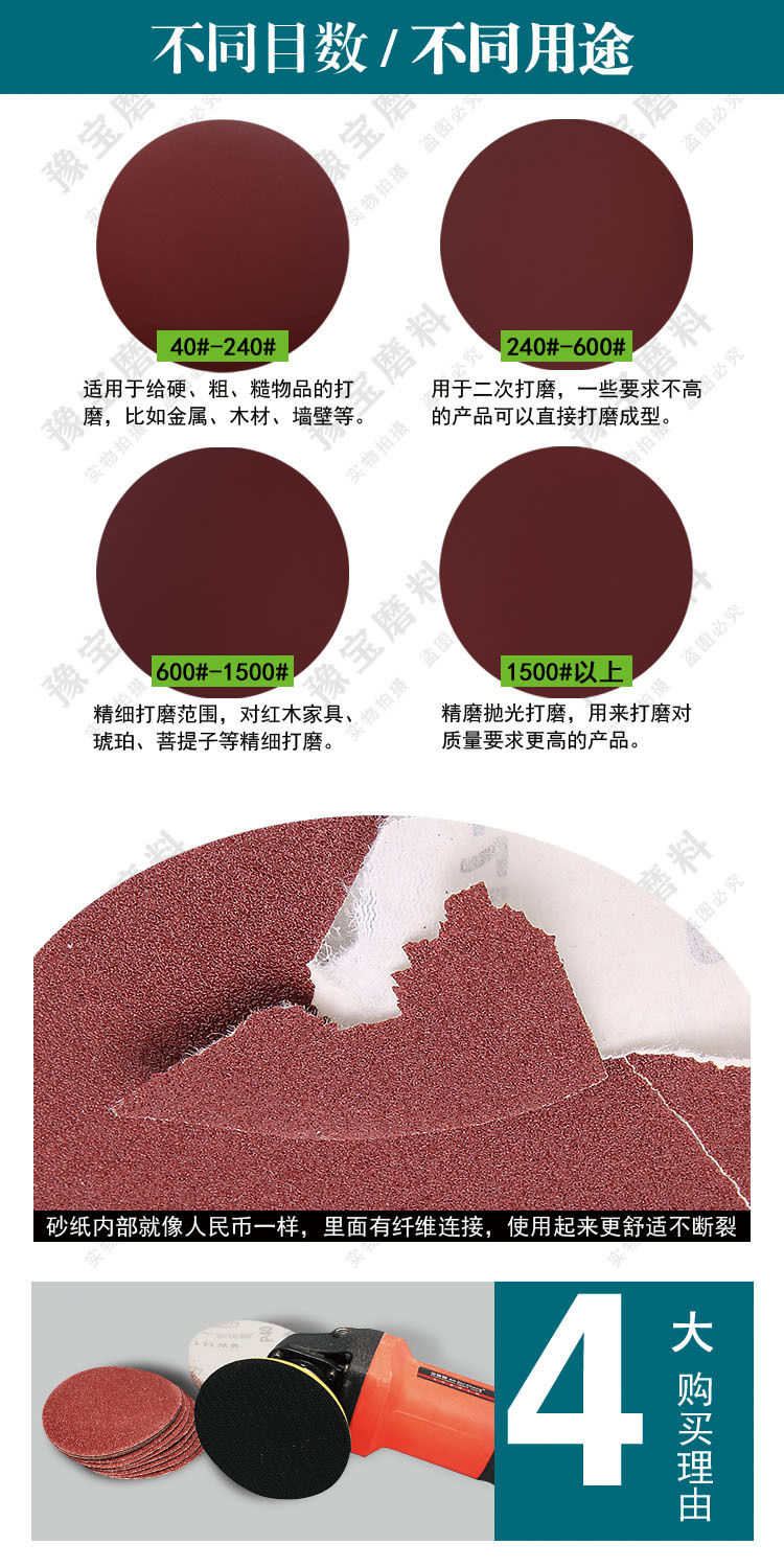 圆盘砂纸分为两大种类,背胶圆盘砂纸和背绒圆盘砂纸(又名自粘圆盘砂纸和拉绒圆盘砂纸);拉绒圆盘砂纸又为为无孔拉绒圆盘砂纸和带孔拉绒圆盘砂纸.圆盘砂纸的应用范围广泛,打磨产品的效率很高,比起常规手磨快捷,方便,损耗小。