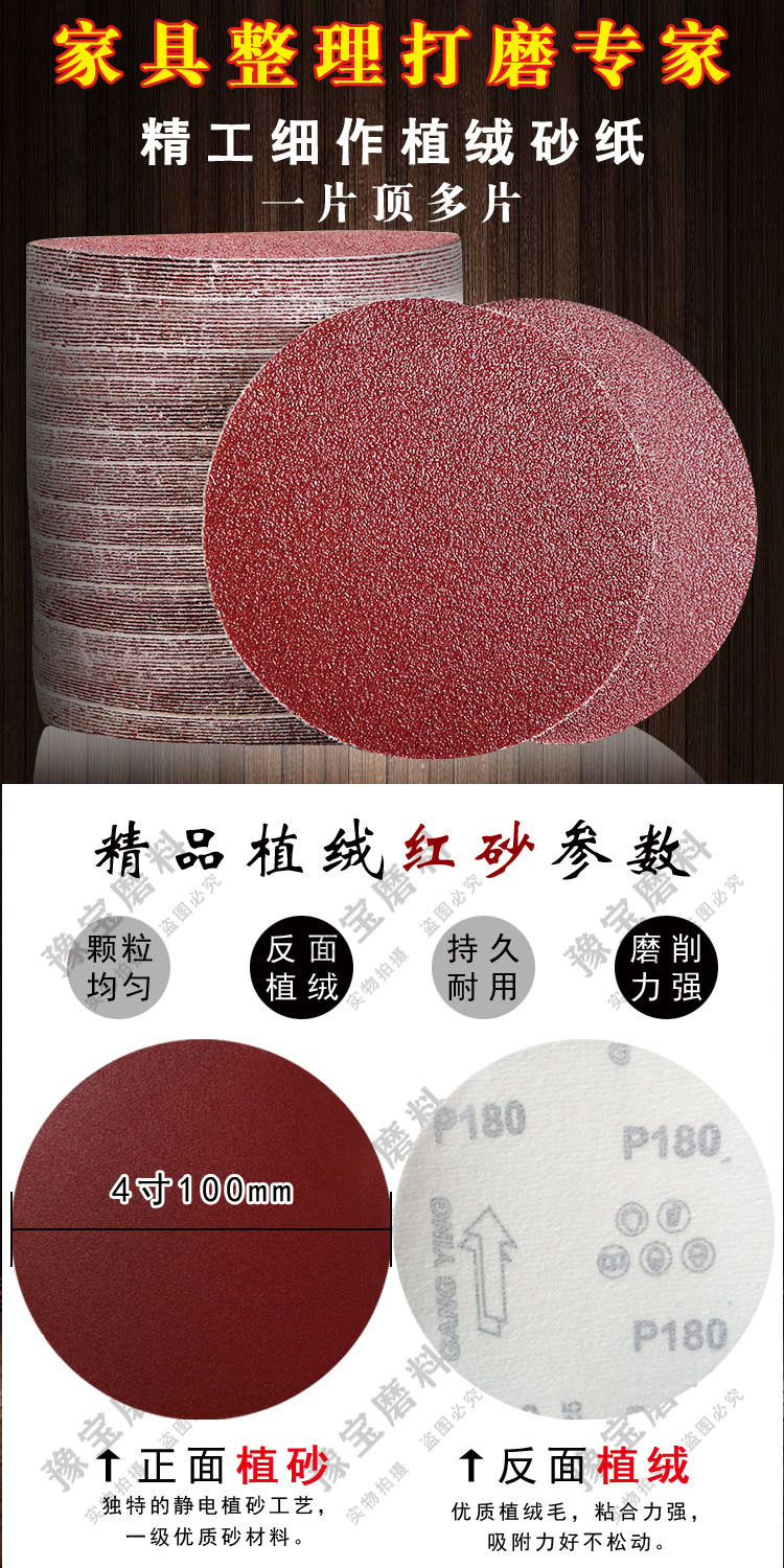 | 植绒砂纸片 | 100mm 4寸 | 钢鹰砂纸 | 40#-2000# | 100片/盒,3000片/箱 |