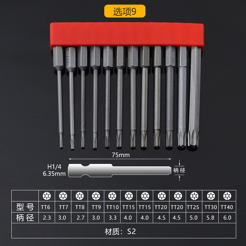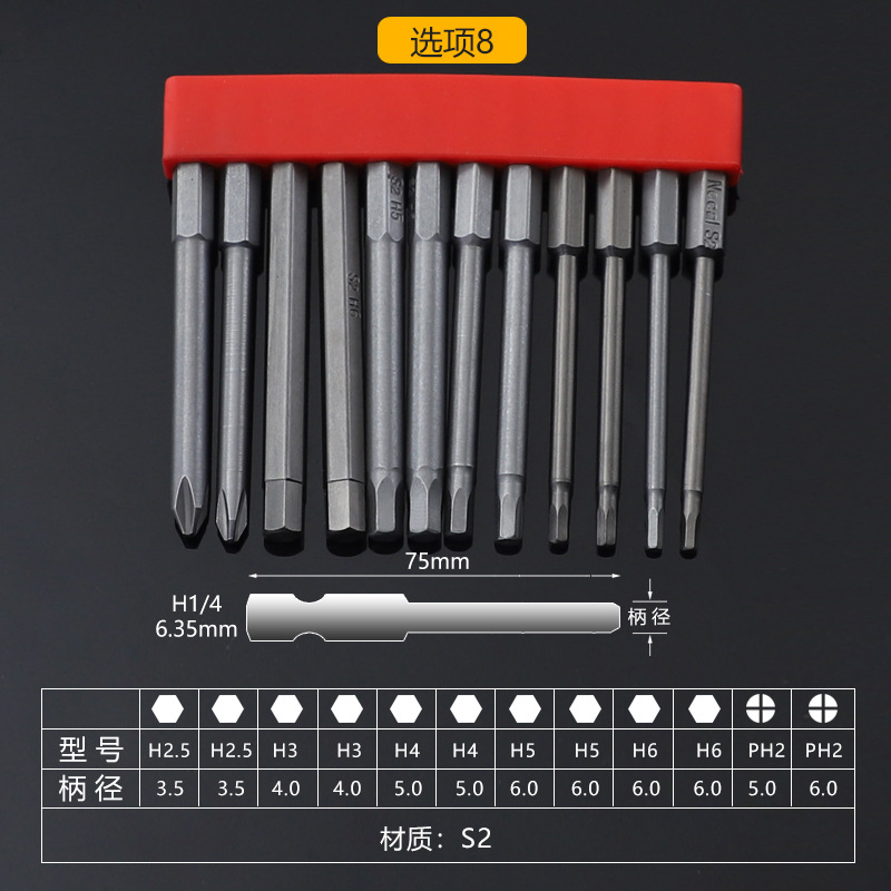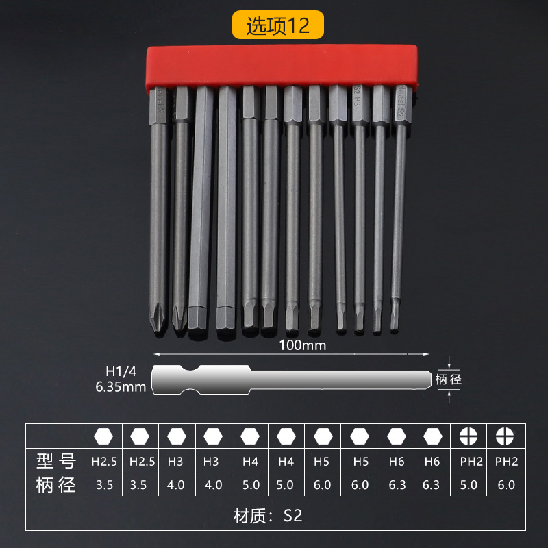 六角柄杆尺寸:1/4"(6.35mm)