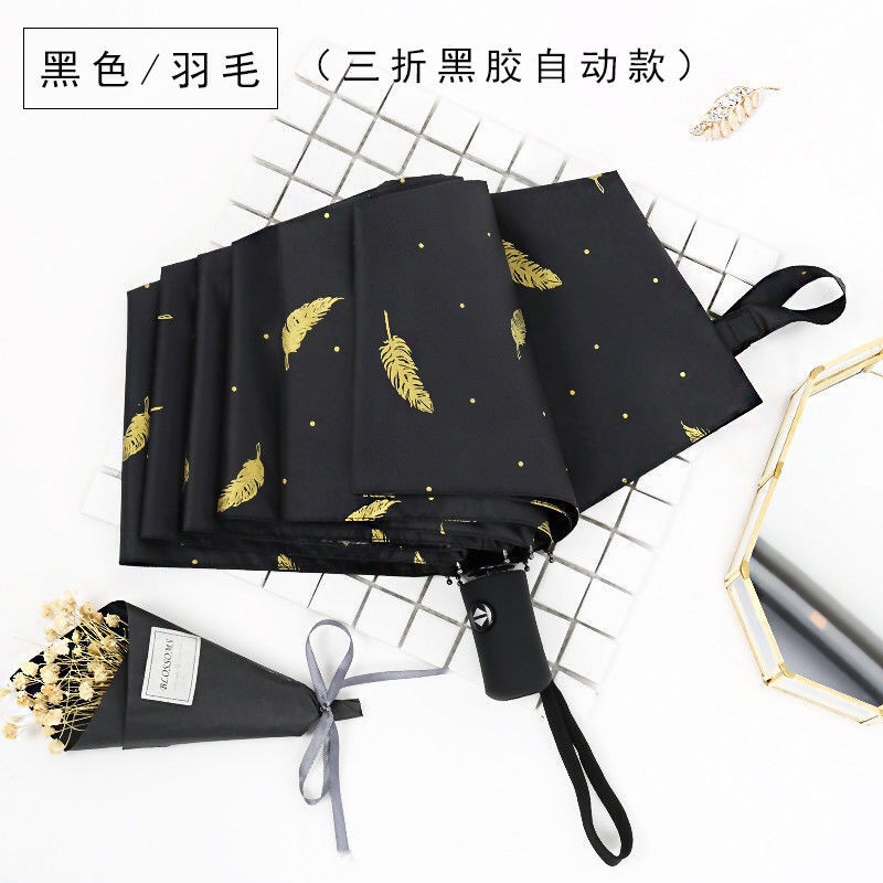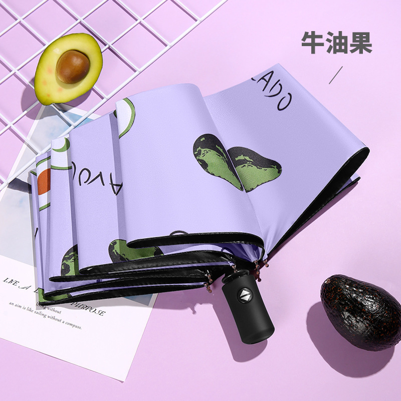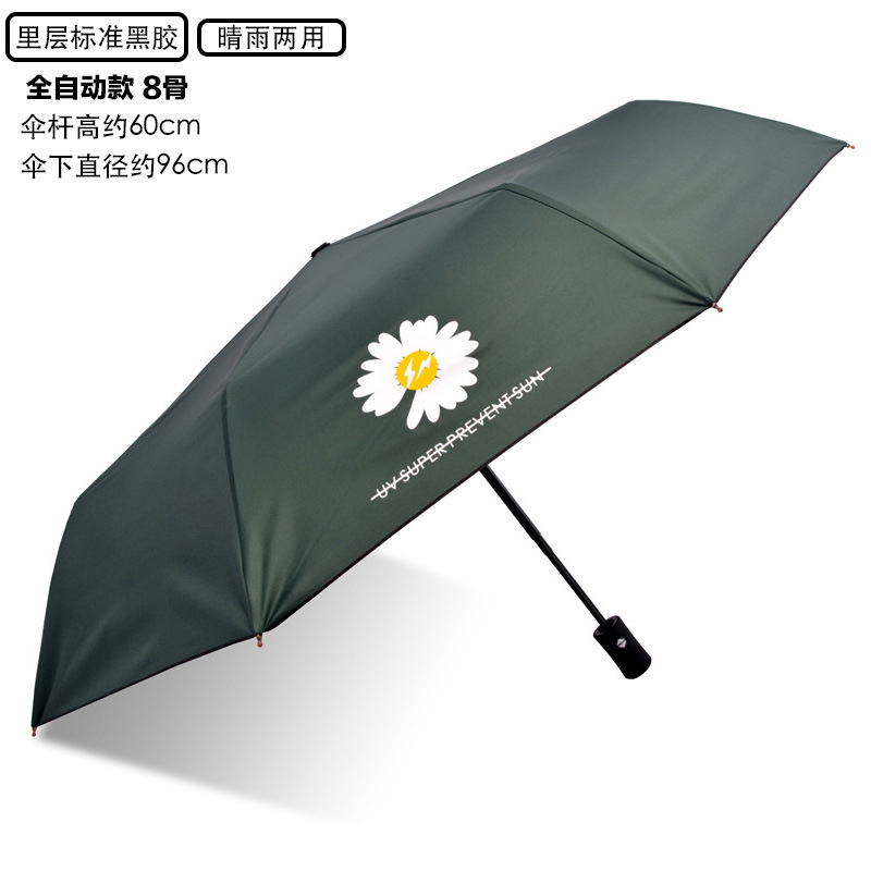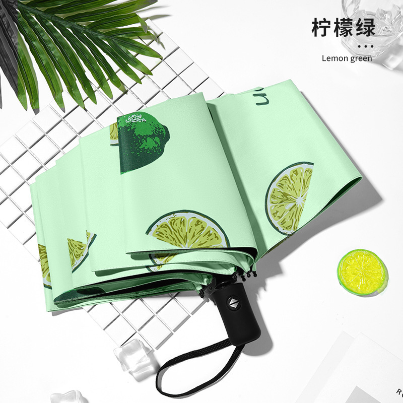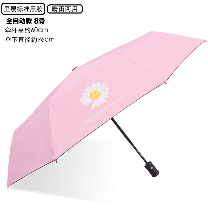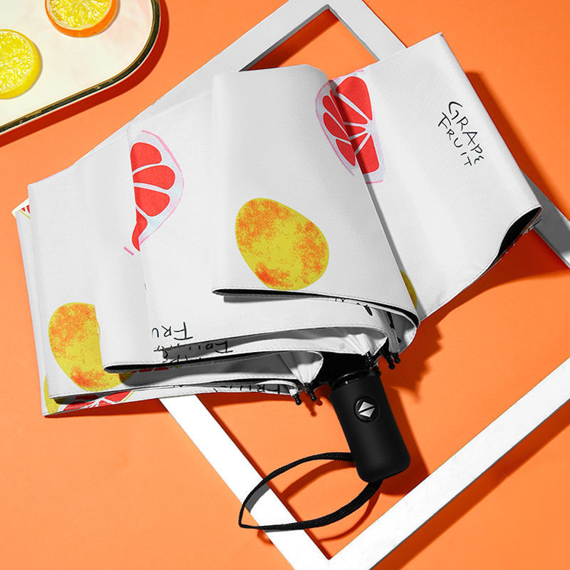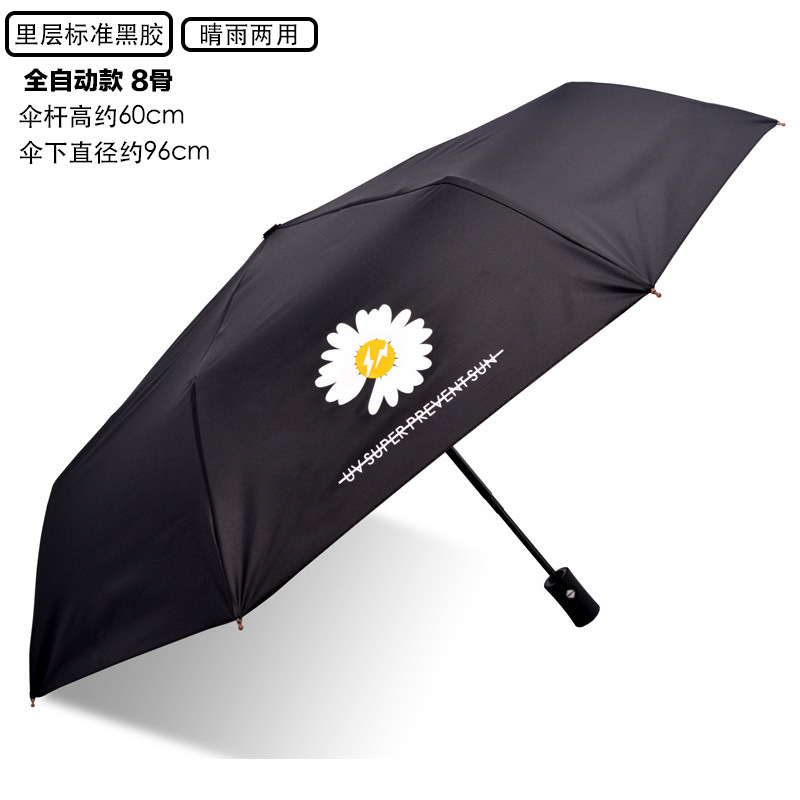 완전 자동 우산 데이지 GD 과일 블랙 접착제 선 스크린 우산 UV 태양 우산 3 개 접는 비 대형 도매스토어 가기