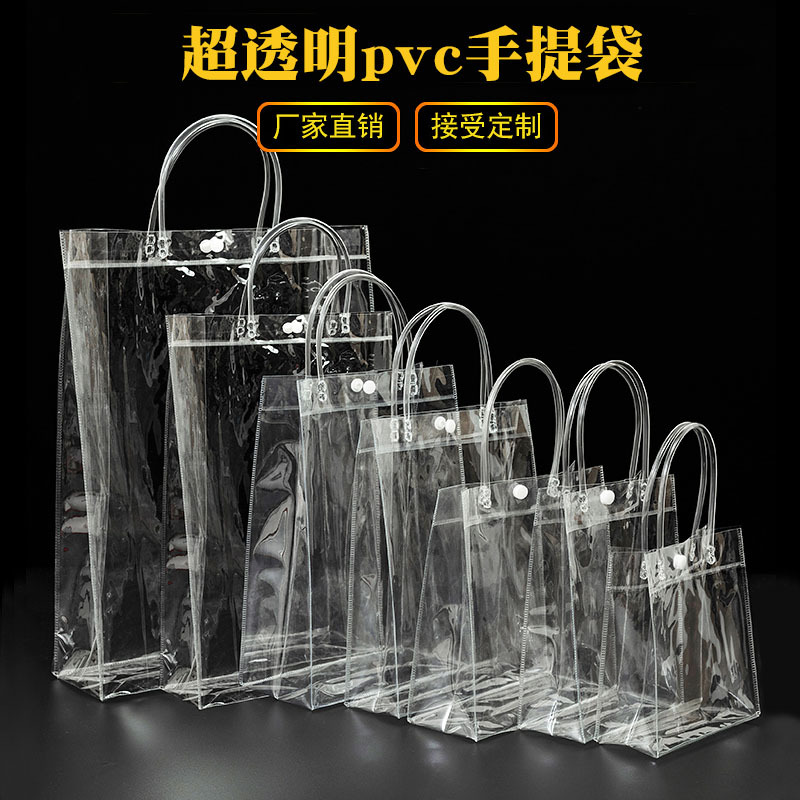 재고 투명 PVC 핸드백 플라스틱 선물 가방 꽃 가방 우유 티백 6 개 한 손 선물 가방 도매