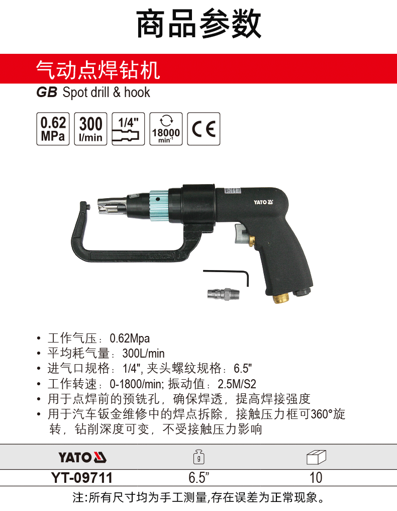 YATO (YATO) 공압 스폿 용접 드릴링 머신 대만 수입 건형 제거 용접 현장 자동차 판금 용접 스폿 드릴