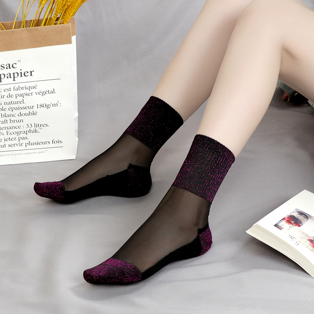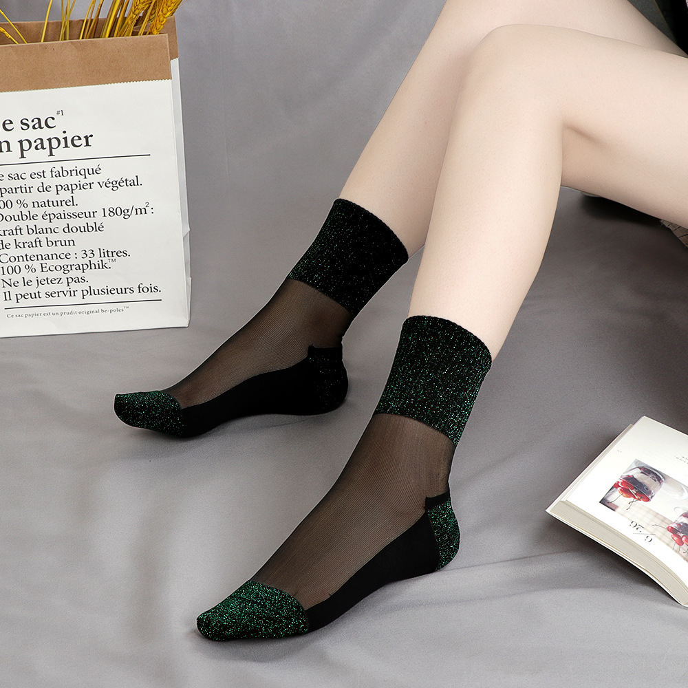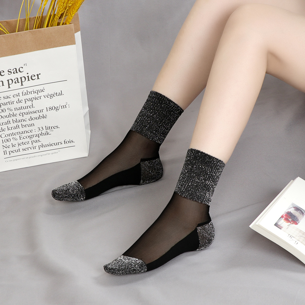 코 양말 미끄럼 방지 내마모성 겨울 유리 스타킹 여성용 얇은 실버 양말 한국식 봄과 가을 면 바닥 크리스탈 양말