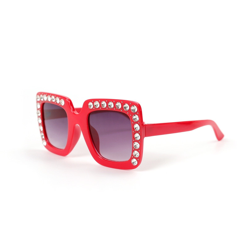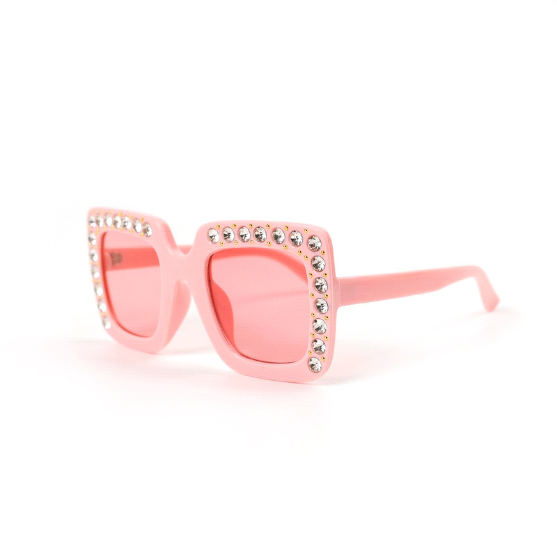 儿童方框太阳镜欧美范大框镶钻时尚潮款墨镜男童女童防紫外线眼镜