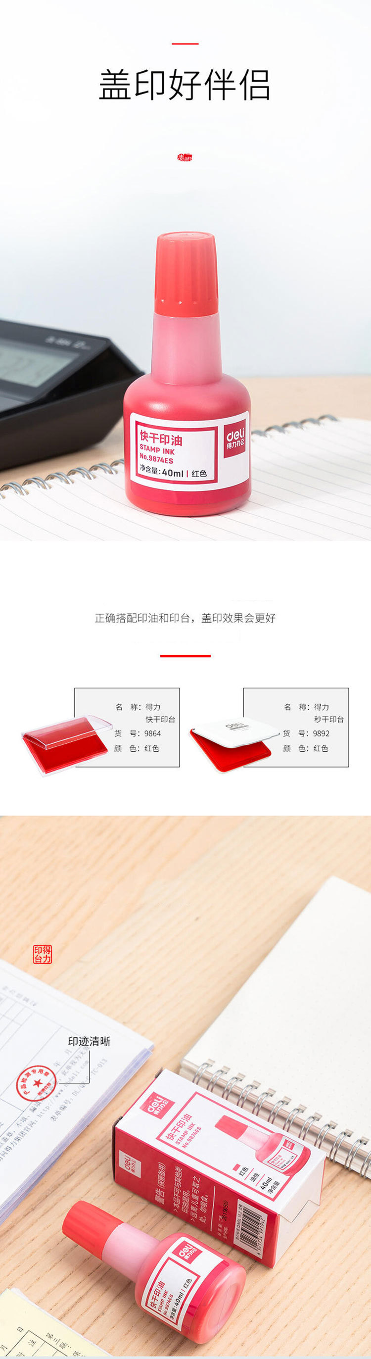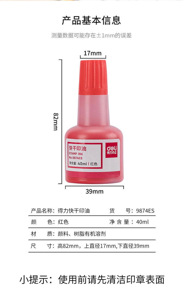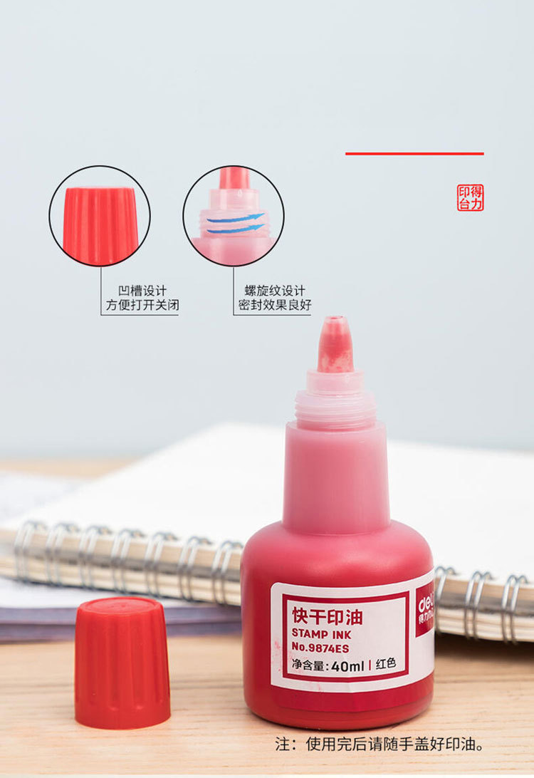 델리 9874ES 퀵 드라이 잉크 잉크 잉크 워터 씰 잉크 레드 금융 사무용품스토어 가기