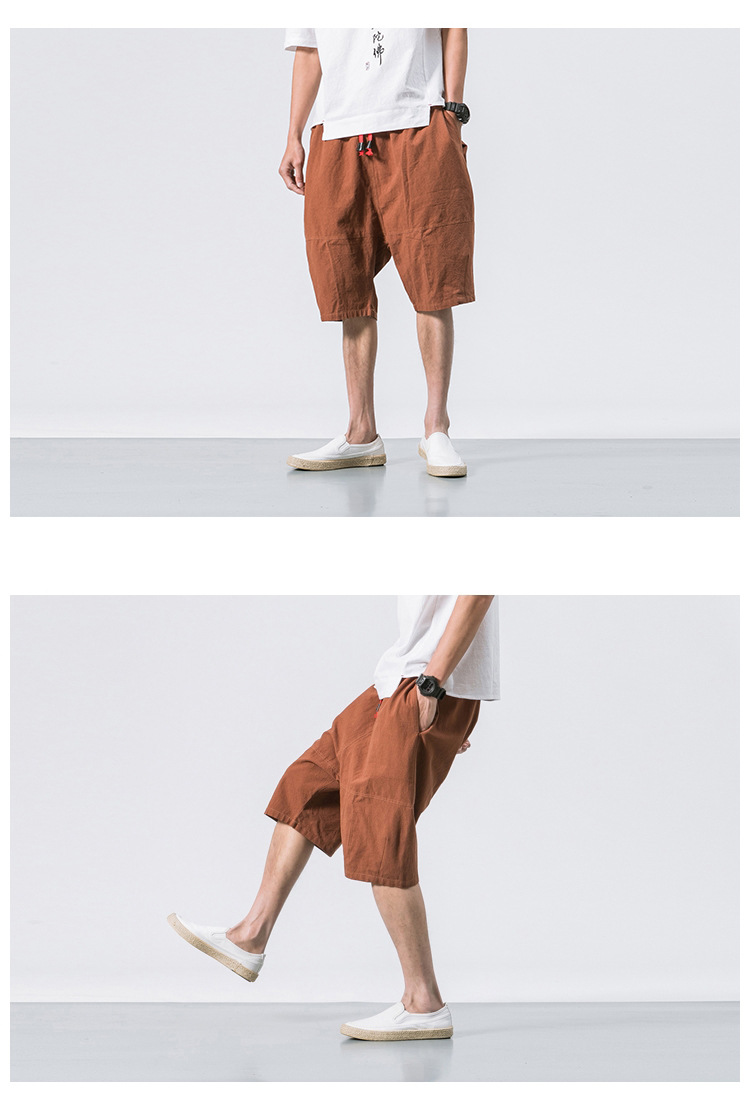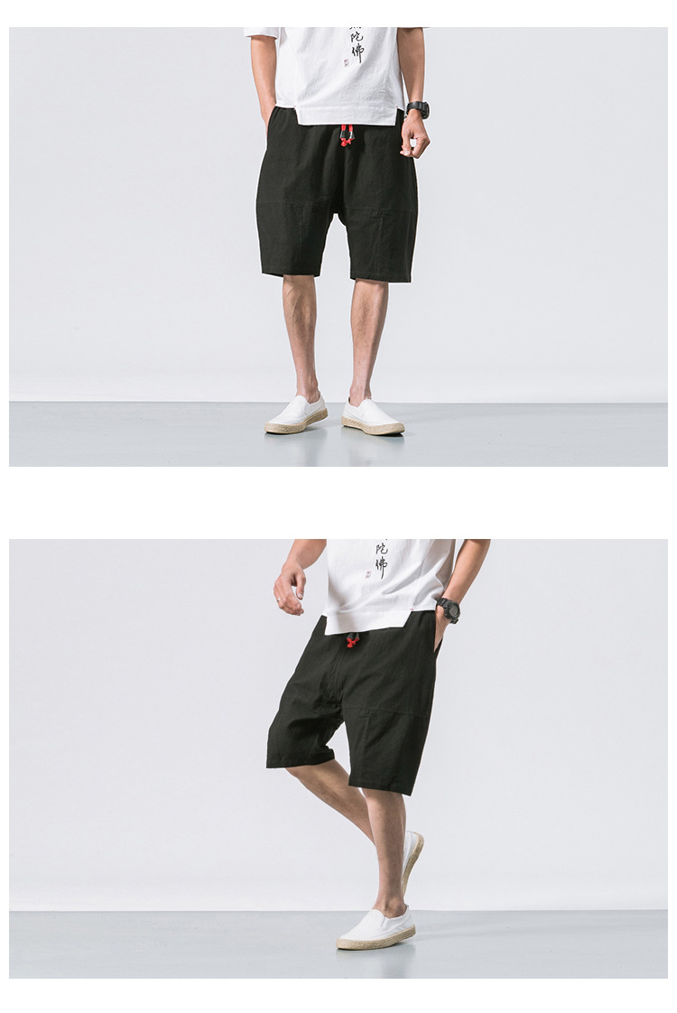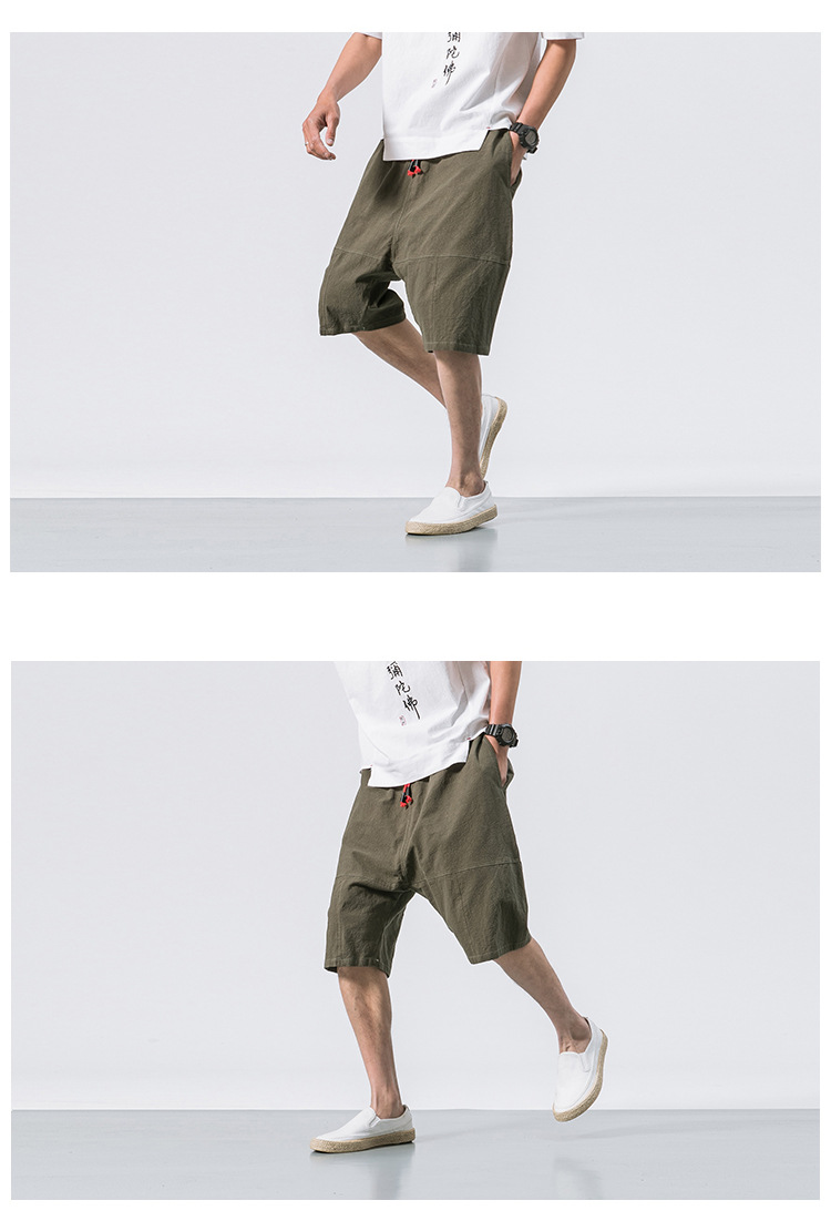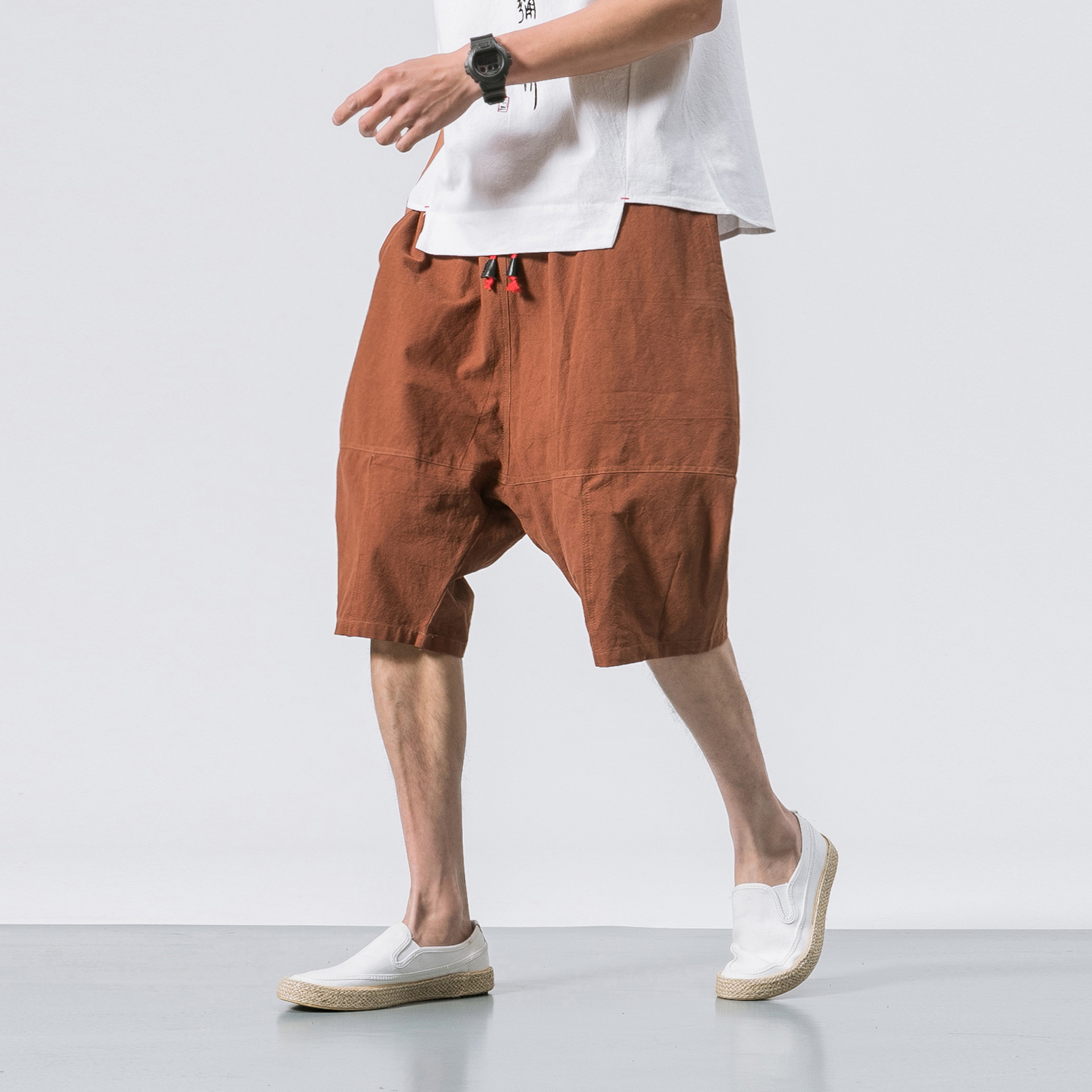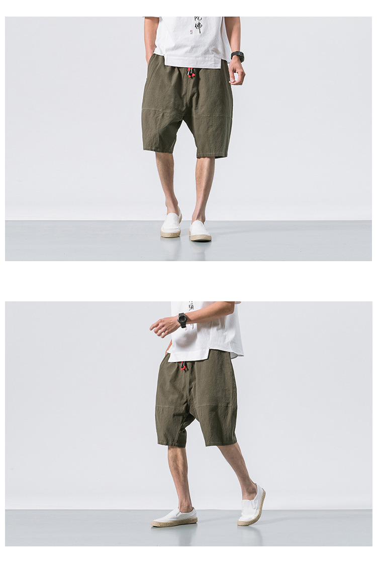 여름 새로운면과 린넨 자른 바지 느슨한 유행 헐렁한 바지 남성 대형 바지 탄성 허리 중국 스타일 비치 바지 남성스토어 가기