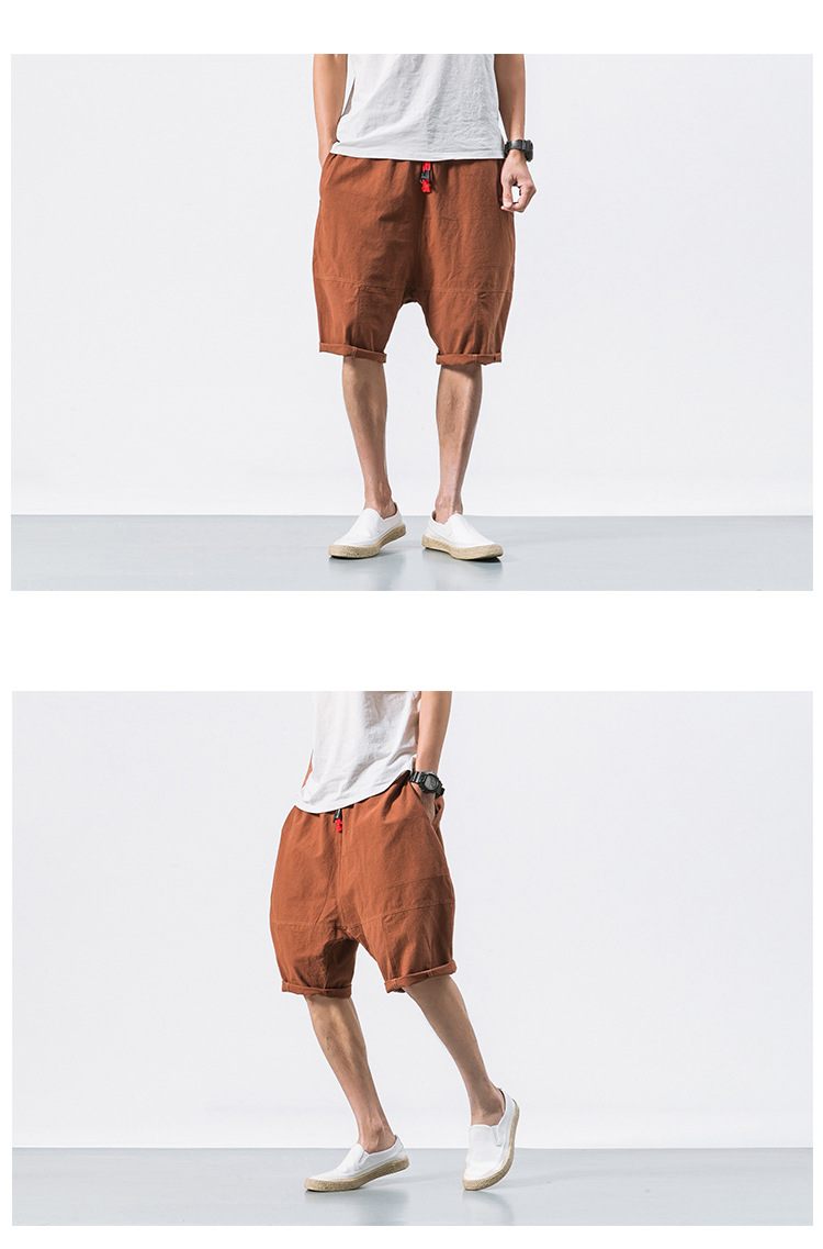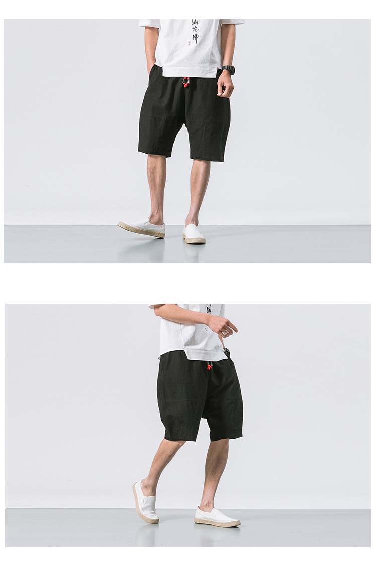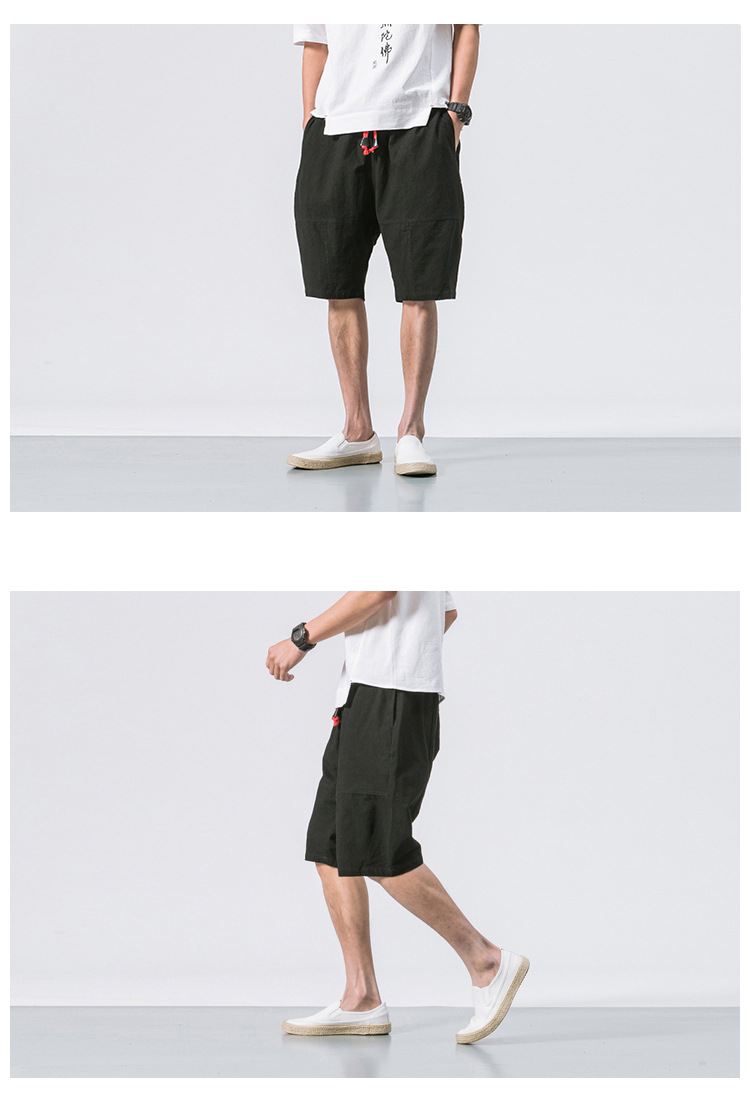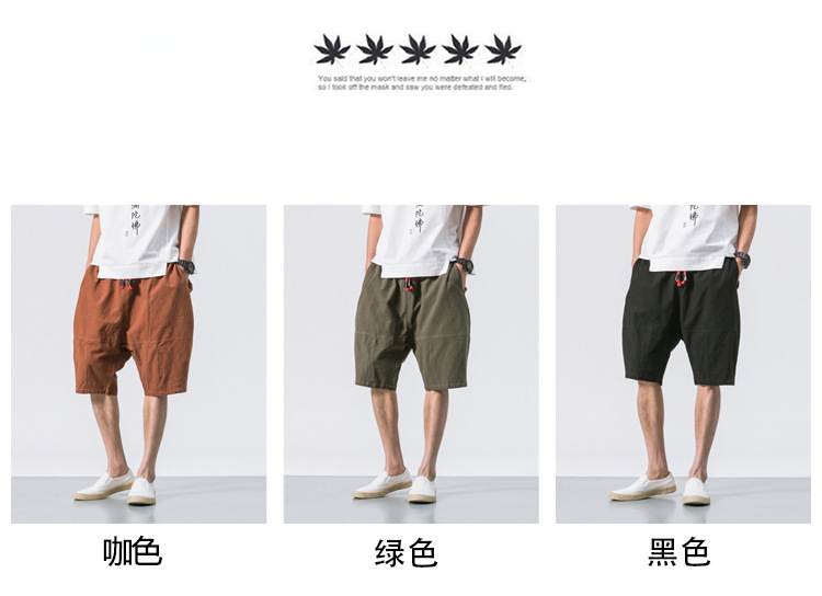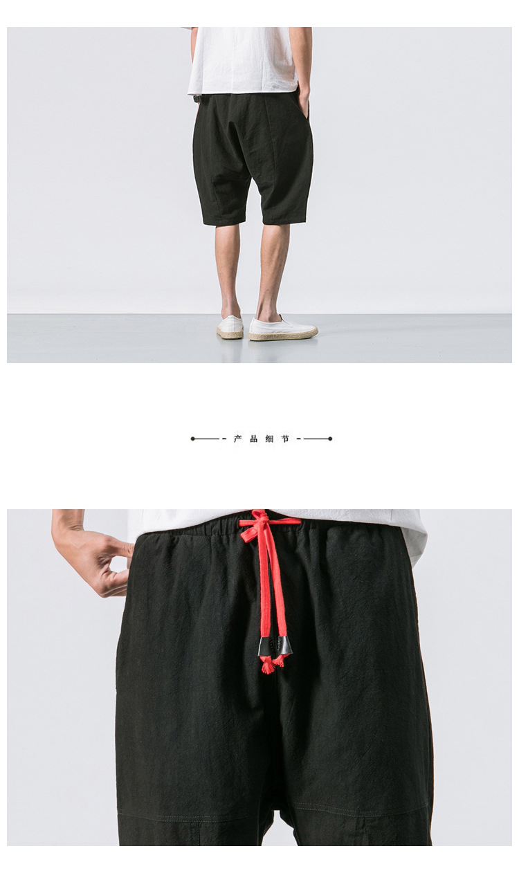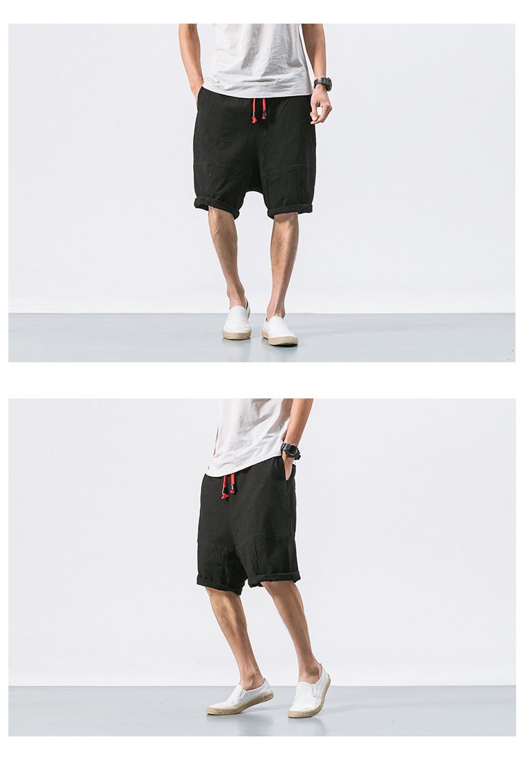 여름 새로운면과 린넨 자른 바지 느슨한 유행 헐렁한 바지 남성 대형 바지 탄성 허리 중국 스타일 비치 바지 남성스토어 가기
