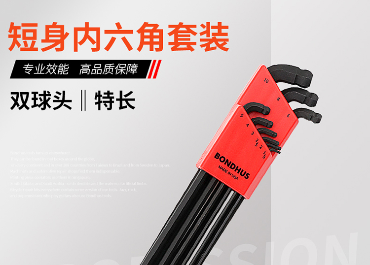 미국 볼튼 bondhus 짧은 벤드 바디 더블 볼 헤드 블랙 육각 키 세트 추가 롱 앨런 렌치 수입