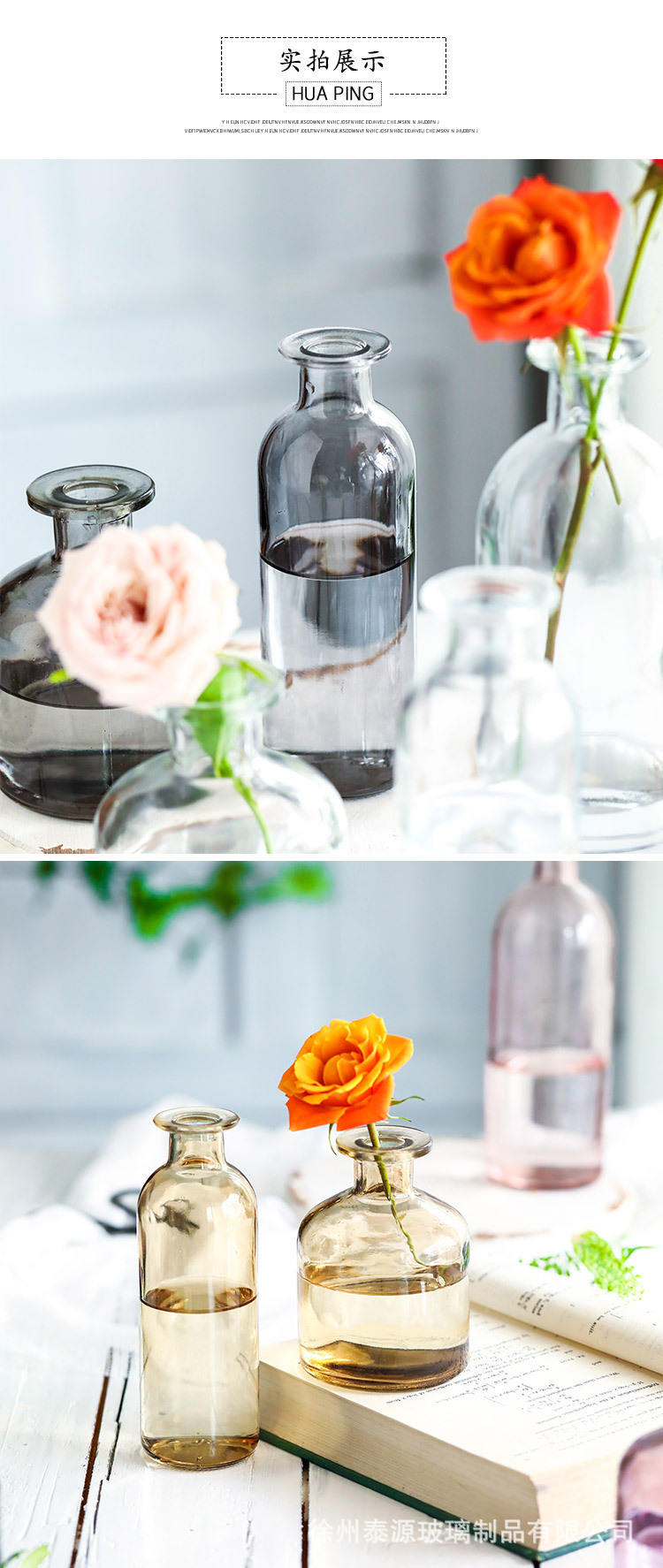 인기 판매 중인 작은 컬러 투명 유리 꽃병 수경재배 꽃꽂이용 화병 가정 장식 용기 도매 재고 있음 녹색 식물