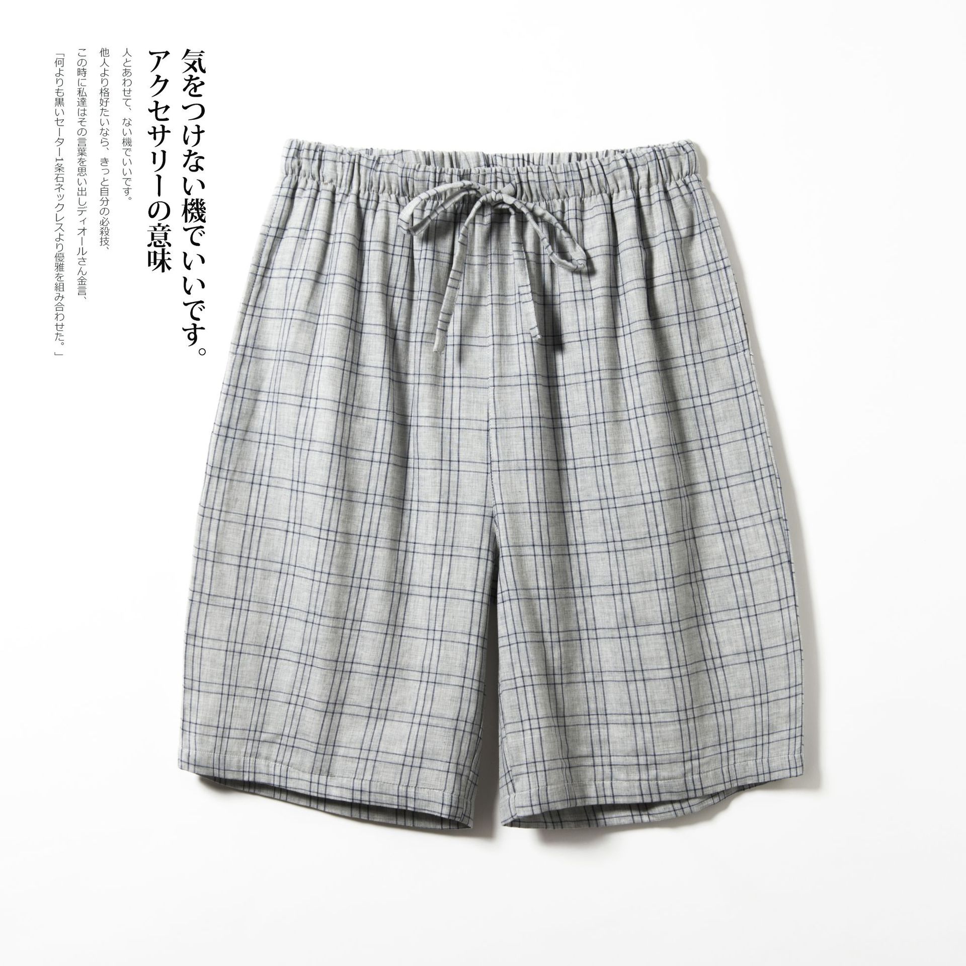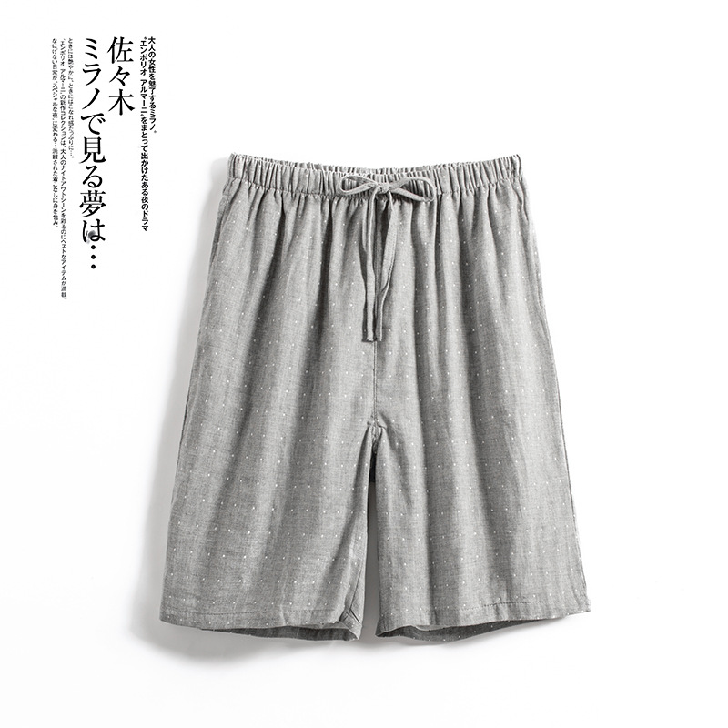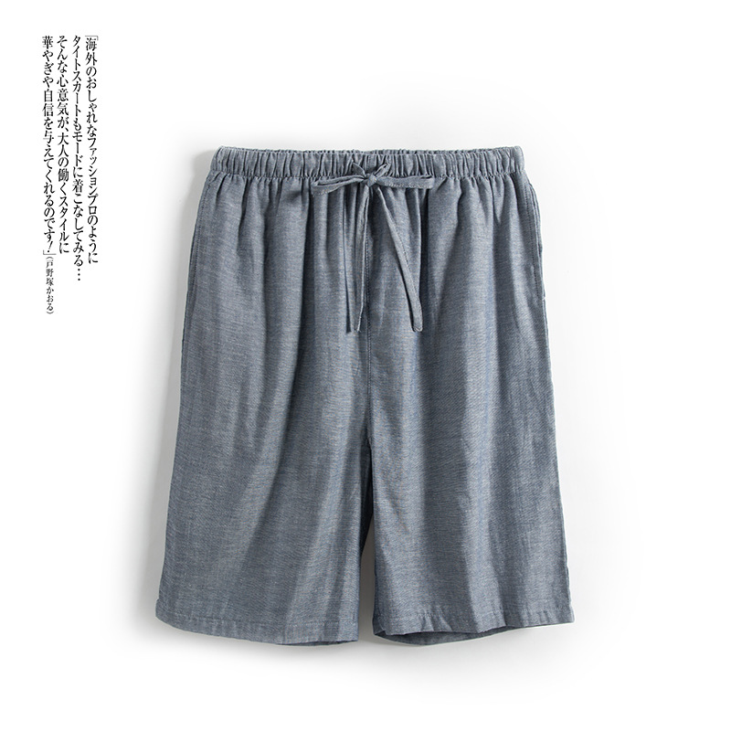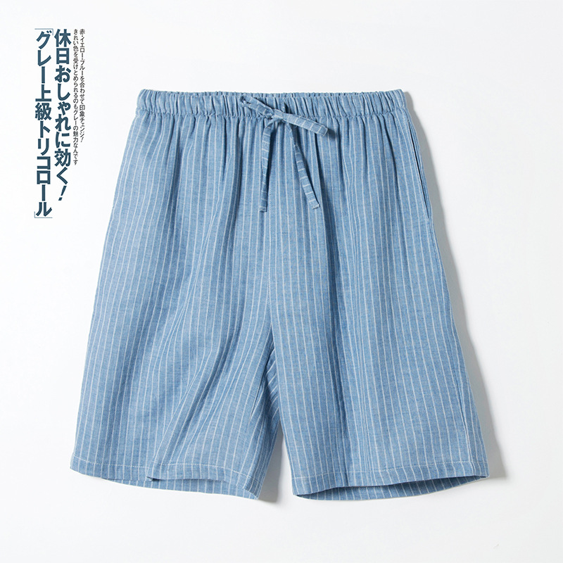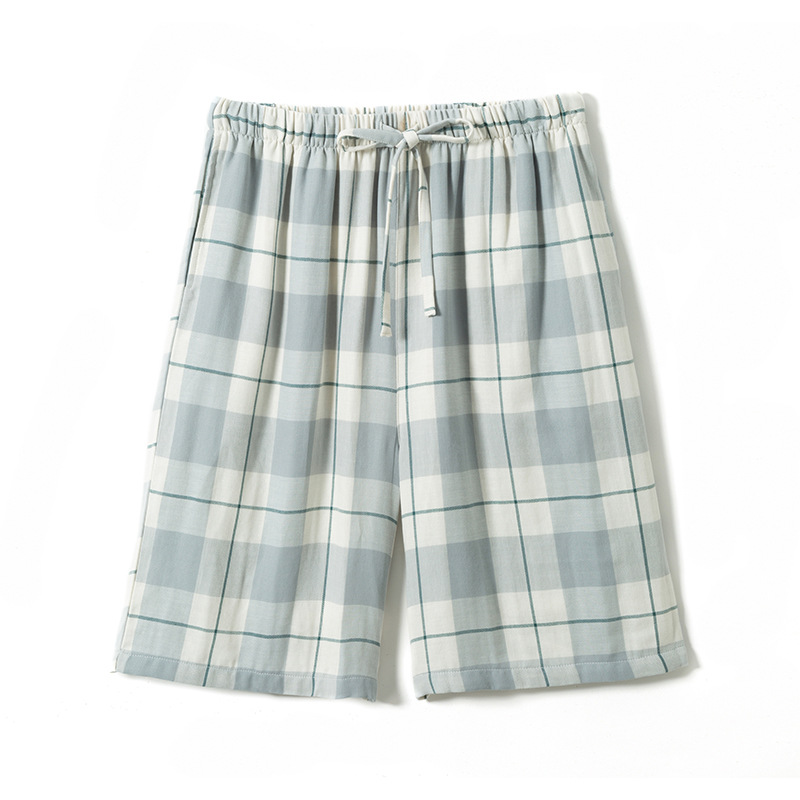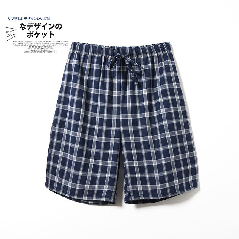 Shangsha 우수한 제품-여름 면 거즈 파자마 바지 남자의 짧은 Muyin 일본 격자 무늬 비치 바지 플러스 사이즈 도매스토어 가기