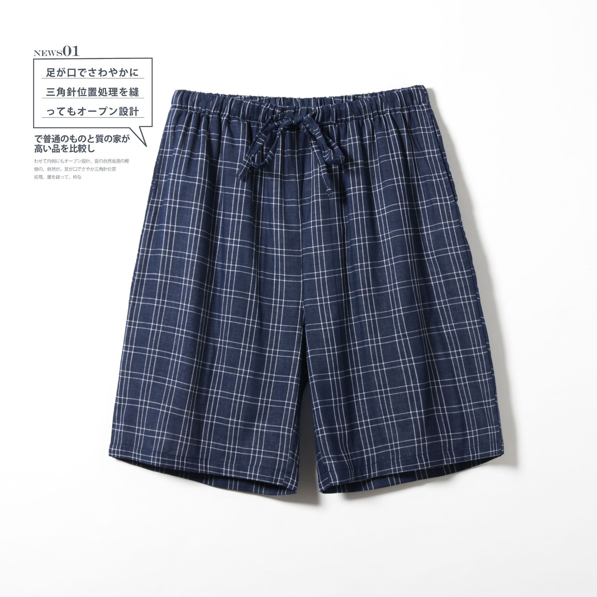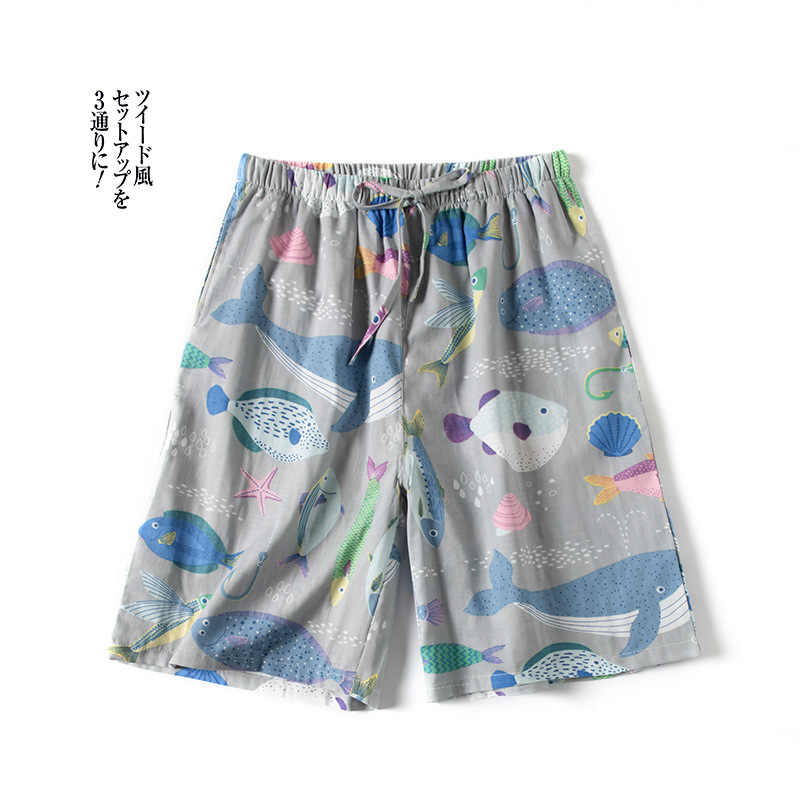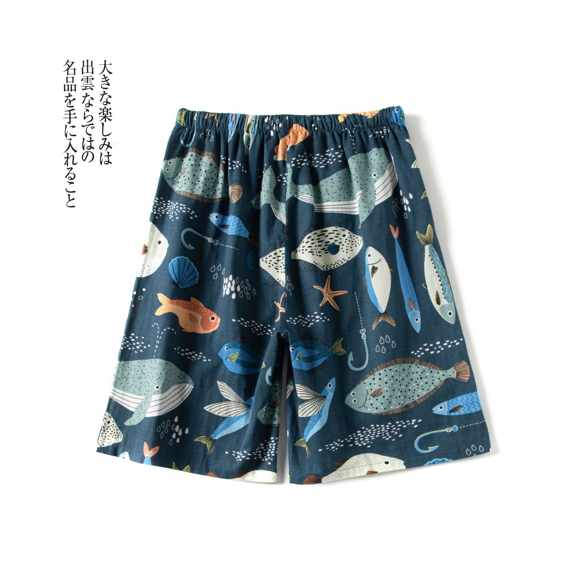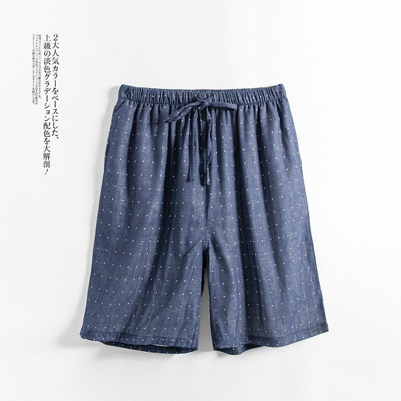 Shangsha 우수한 제품-여름 면 거즈 파자마 바지 남자의 짧은 Muyin 일본 격자 무늬 비치 바지 플러스 사이즈 도매스토어 가기