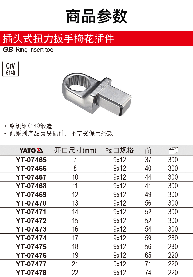 YATO (YATO) 플러그 타입 토크 렌치 스퀘어 헤드 Torx 플러그 인 스퀘어 타입 교환 헤드 토크 렌치 헤드