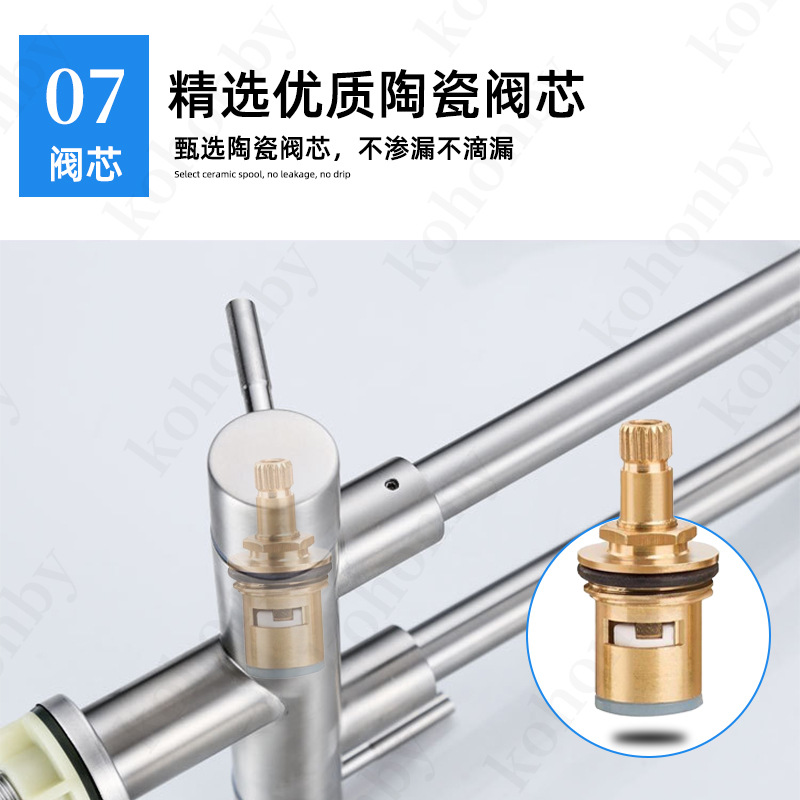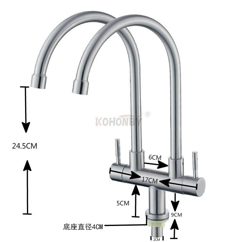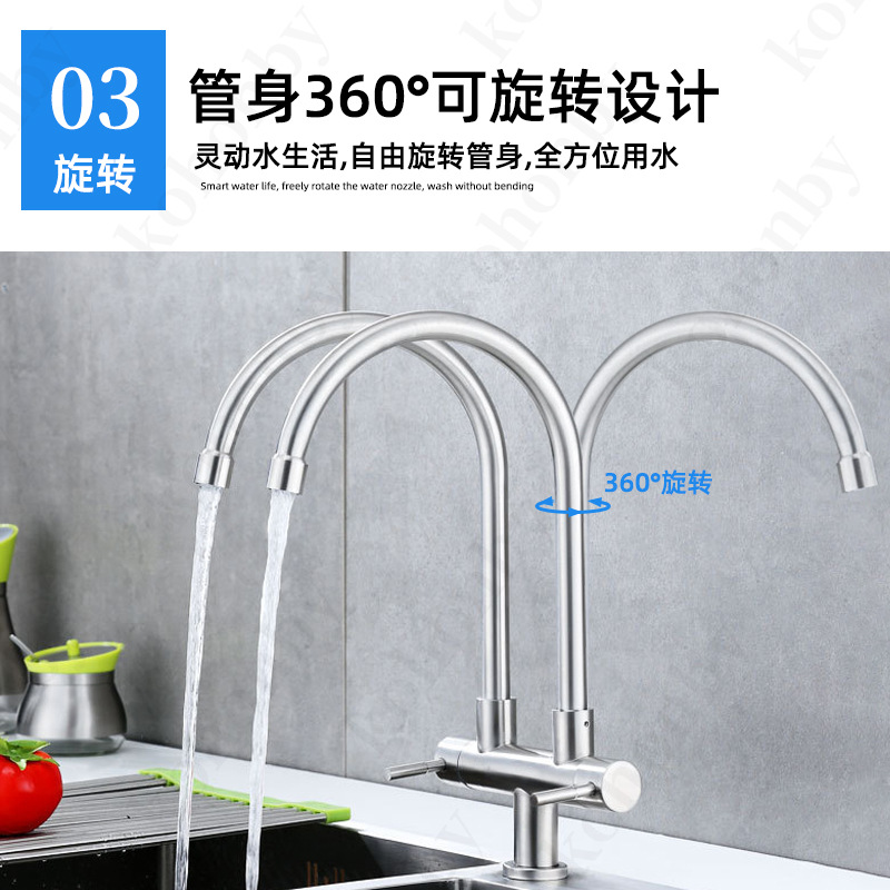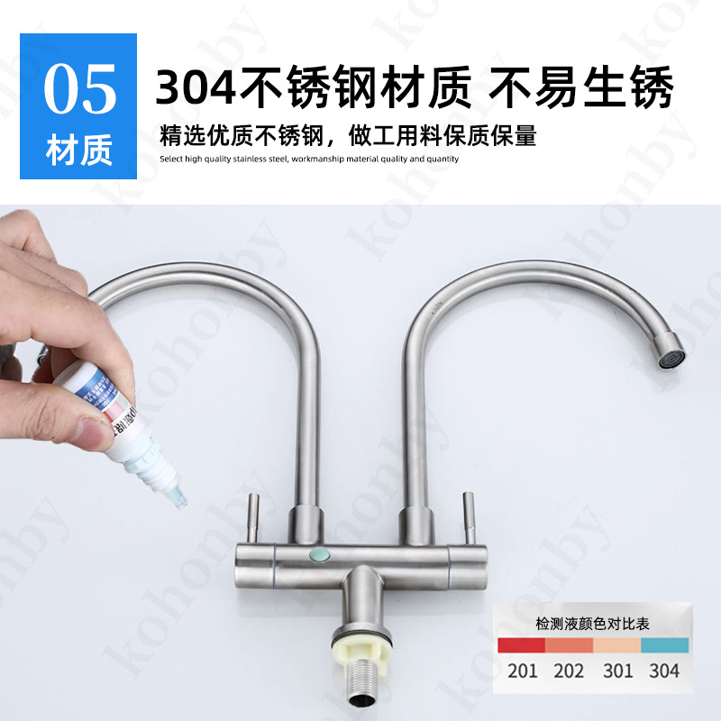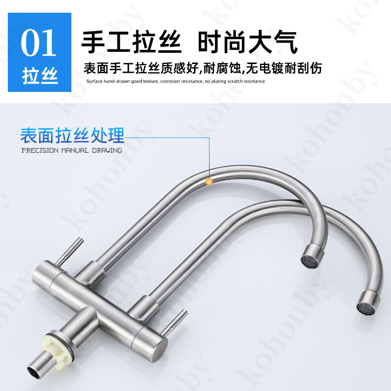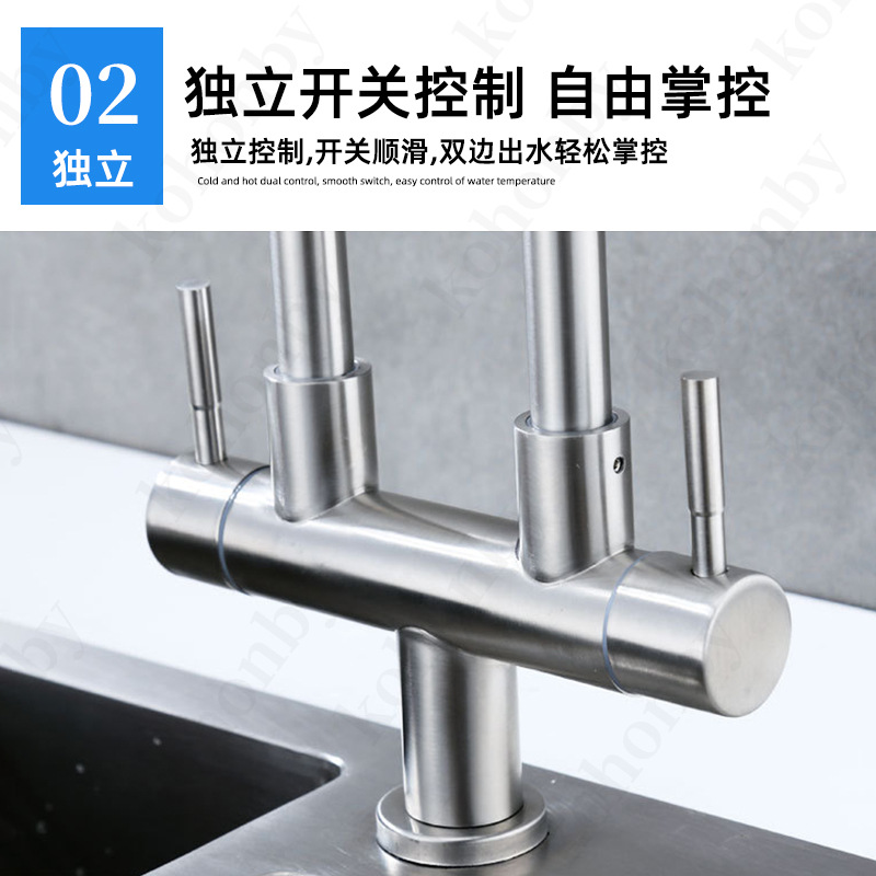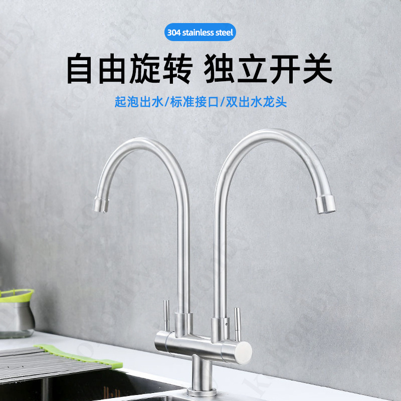 304 스테인레스 스틸 이중 튜브 주방 수도꼭지 싱크대 식기 세척 가정용 단일 냉각 회전식 이중 핸들 이중 제어