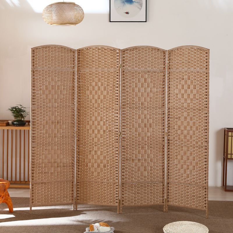 아마존 베스트 셀러 화면 단단한 나무 짚 파티션 거실 뷰티 살롱 사무실 접이식 화면 모바일 등나무 화면스토어 가기