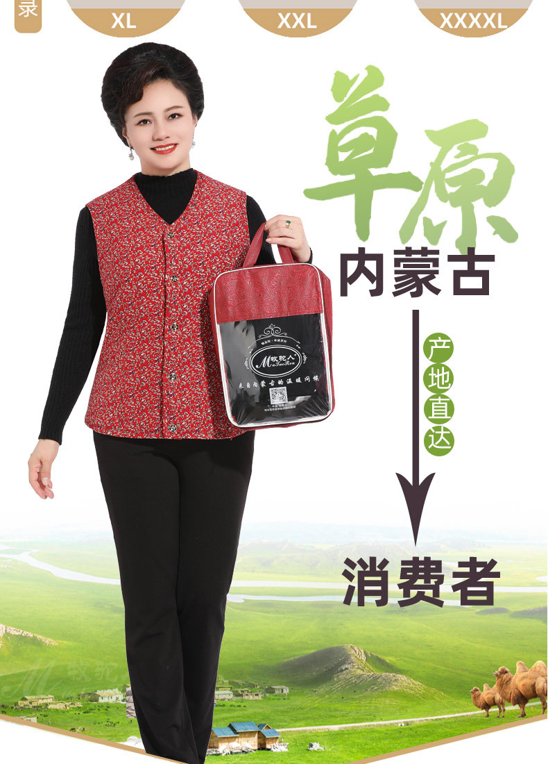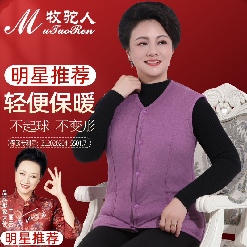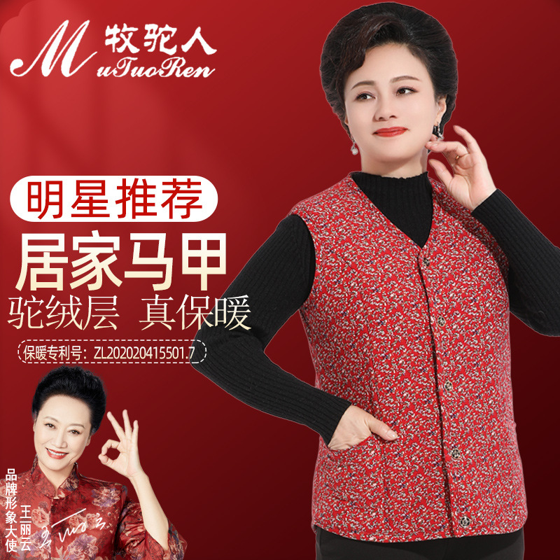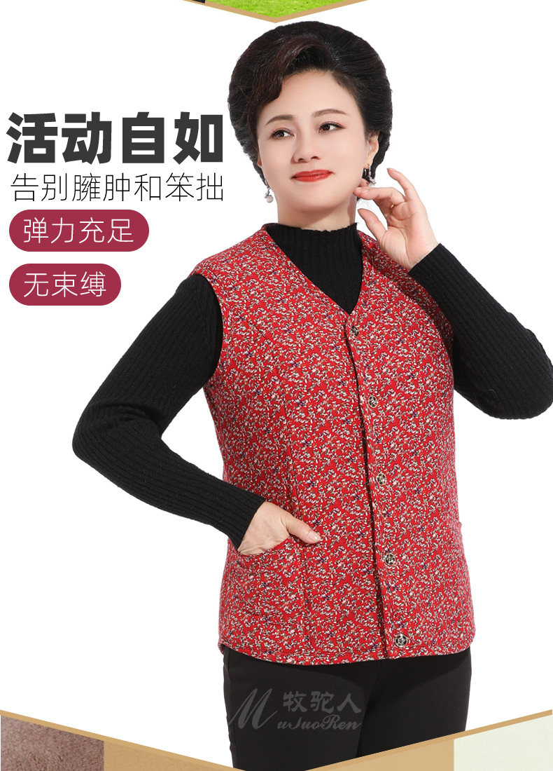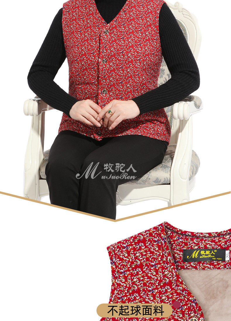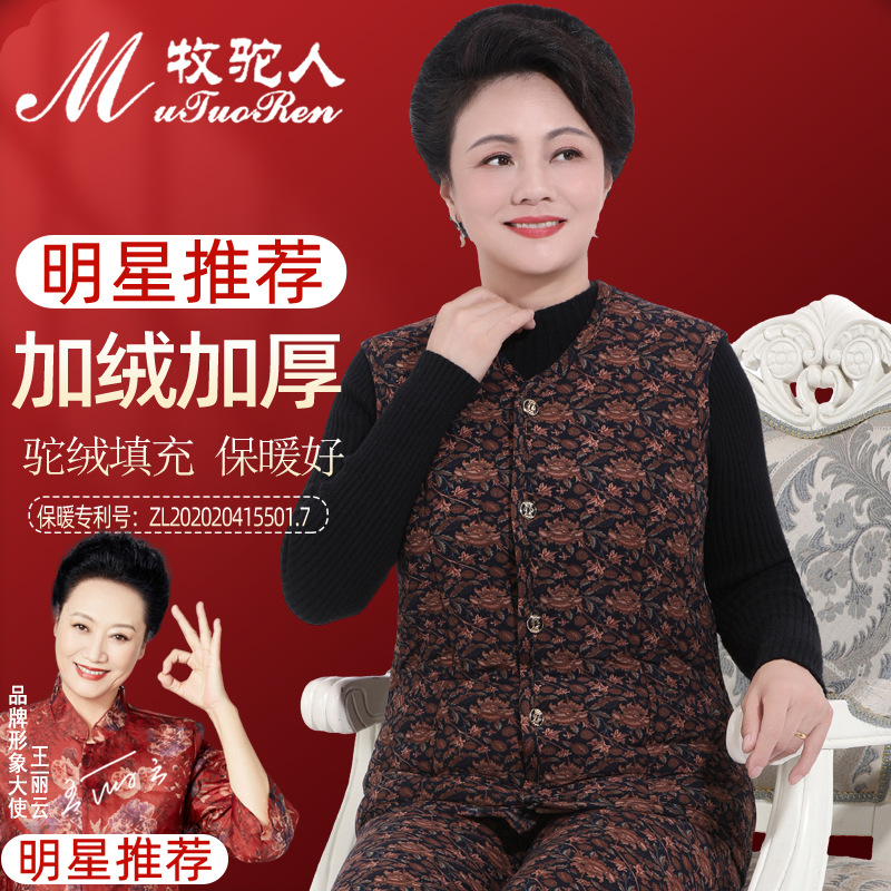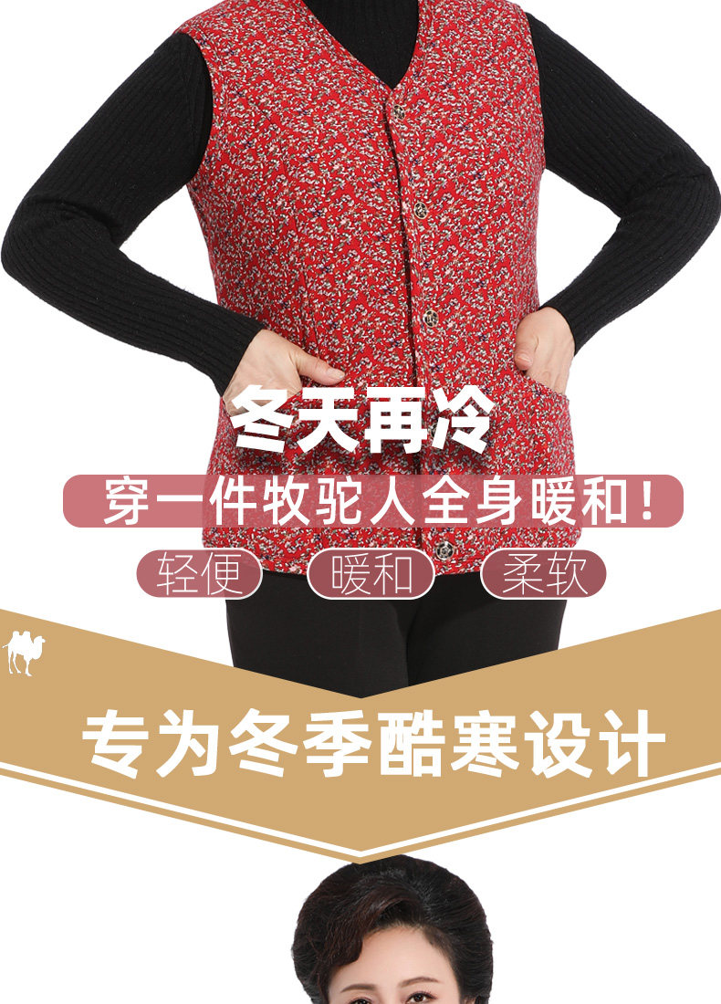 가을과 겨울 새로운 중년 및 노인 카멜 면 조끼 여자의 플러스 사이즈 따뜻한 조끼 어머니의 기모 두꺼운 가정 양복 조끼스토어 가기
