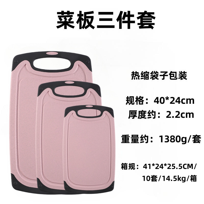 厨房工具FDA小麦秸秆塑胶菜板案板三件套切蔬菜水果切肉砧板用品
