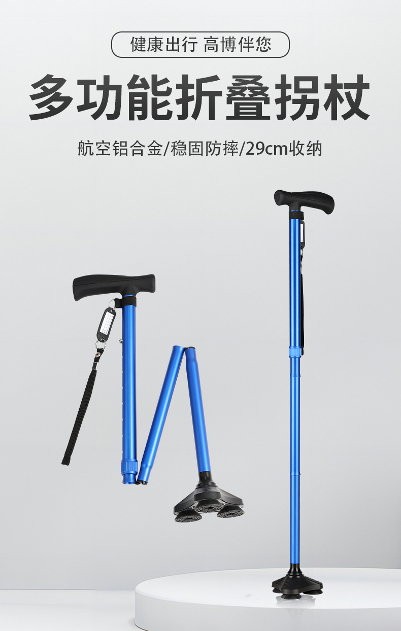 제조업체의 국경을 넘는 인기 상품, 알루미늄 합금 지팡이, 접이식, 텔레스코픽, 4족, 미끄럼 방지, 조명 없음, 노인용 보조 등산 지팡이스토어 가기
